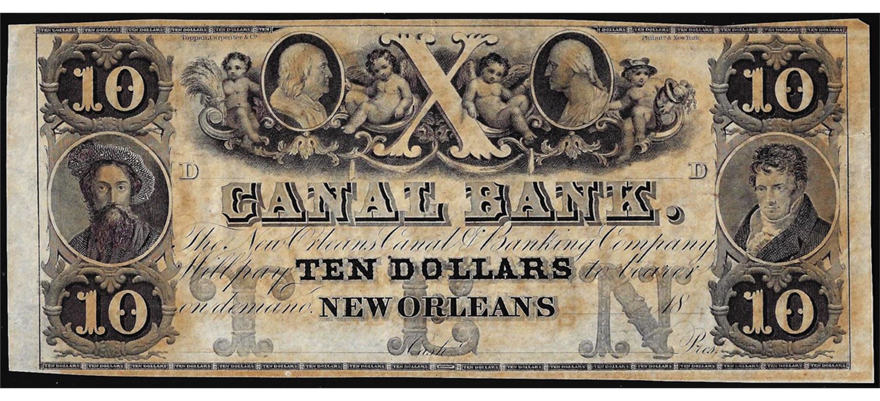 1800's $10 Canal Bank New Orleans, LA Obsolete Note