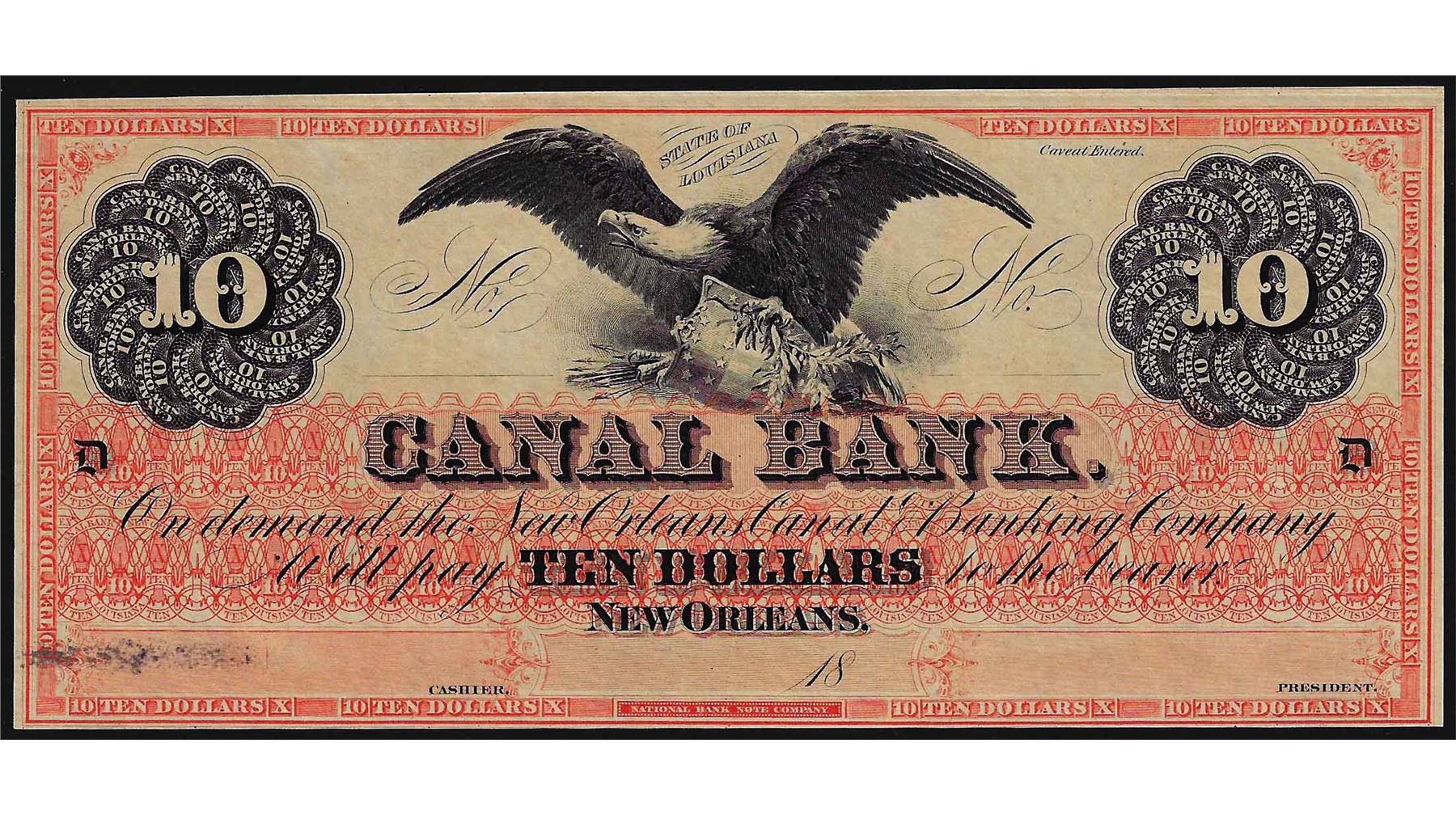 One 1800's $10 Canal Bank New Orleans Obsolete Bank Note.
