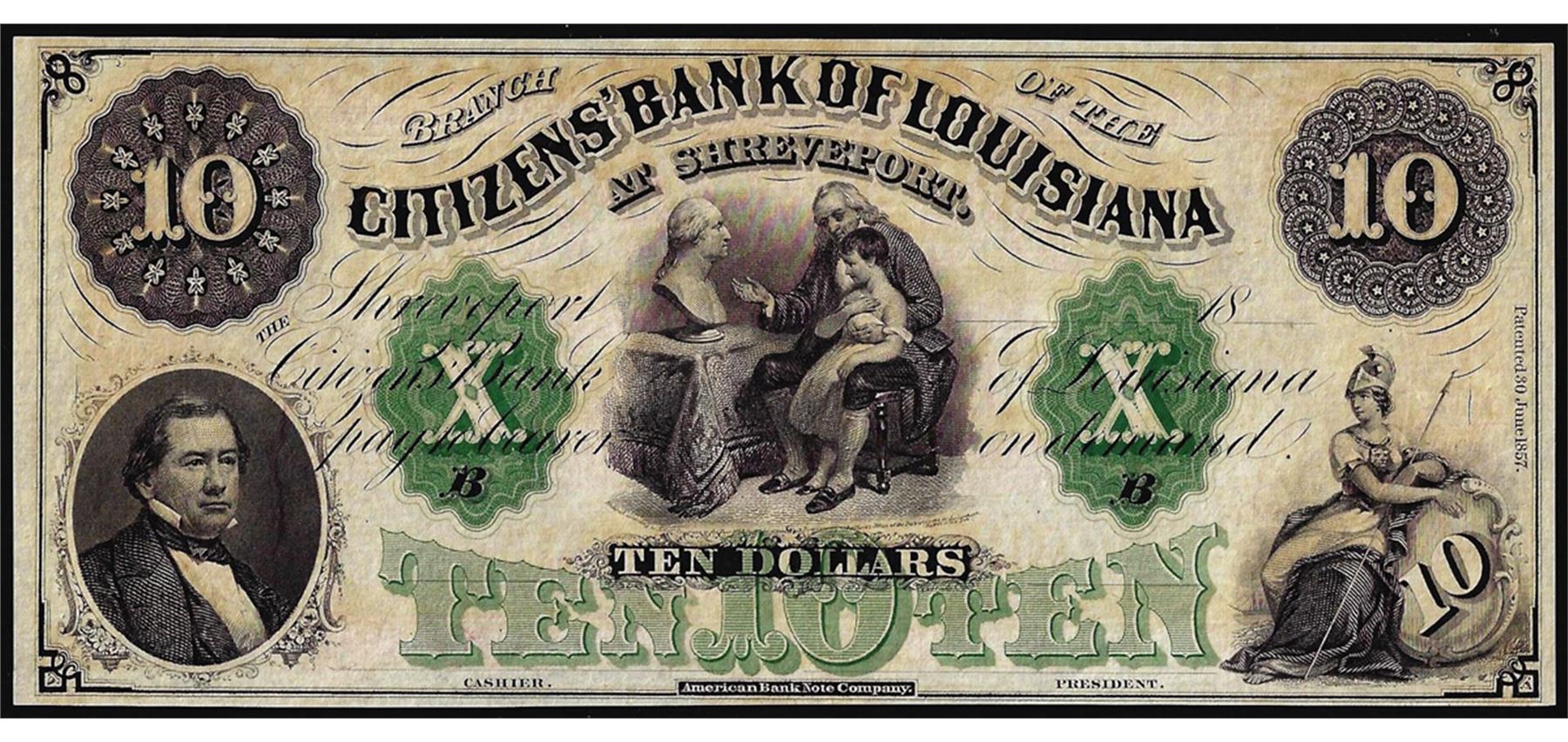One 1800's $10 Citizens Bank of Louisiana Obsolete Bank Note.