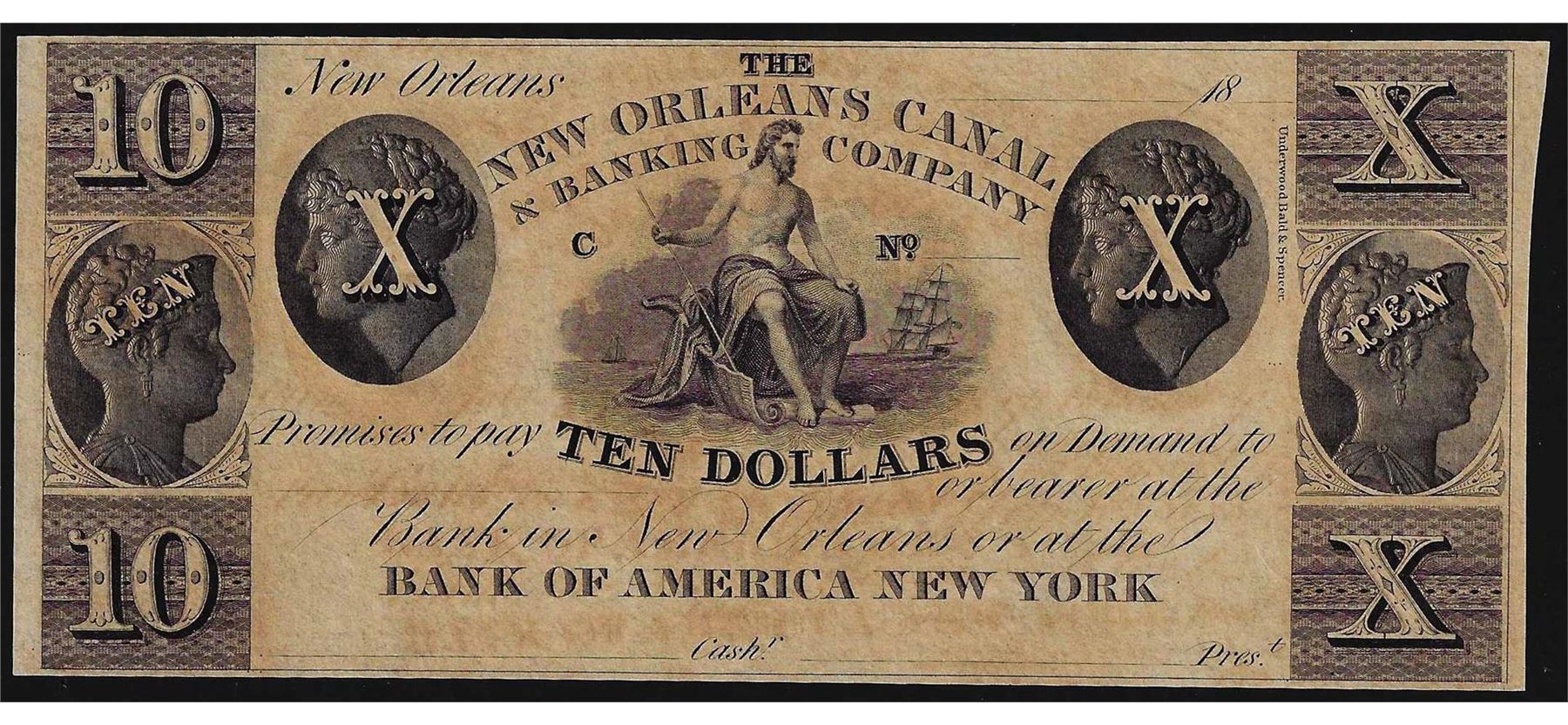 One 1800's $10 New Orleans Canal & Banking Company Obsolete Note.