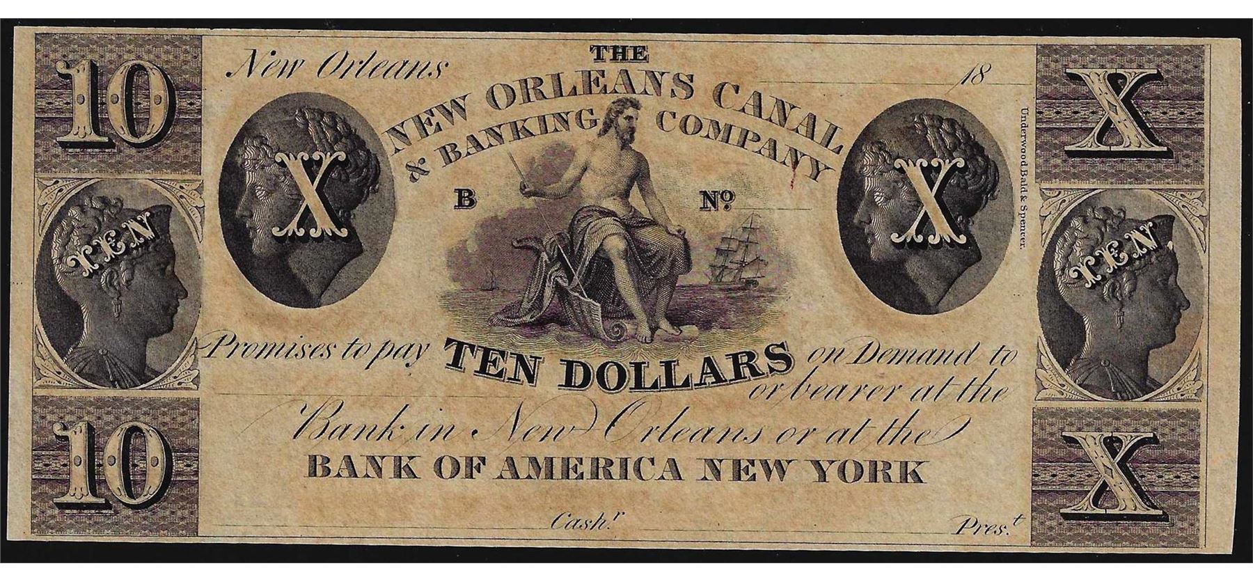 1800's $10 New Orleans Canal & Banking Company Obsolete Note