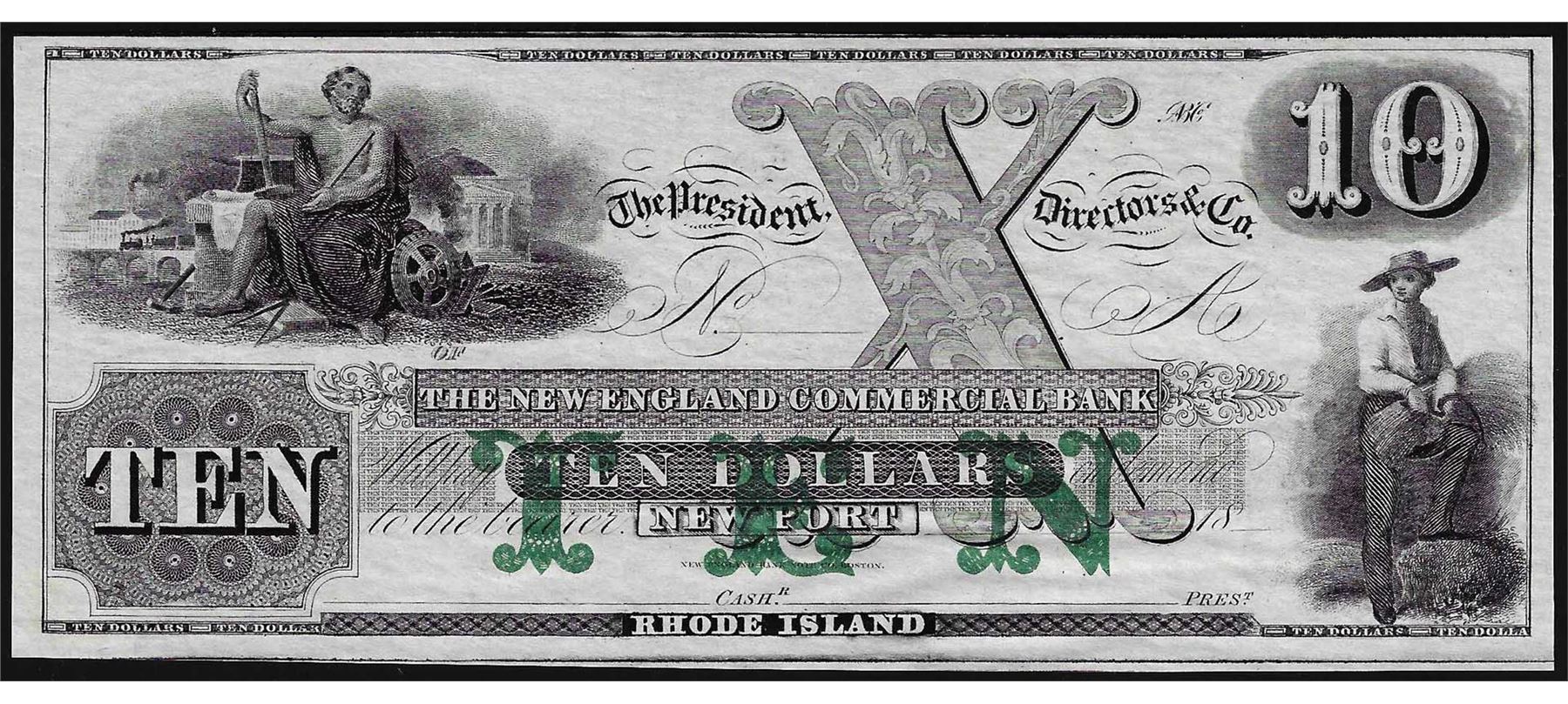1800's $10 The New England Commercial Bank New Port Obsolete Bank Note