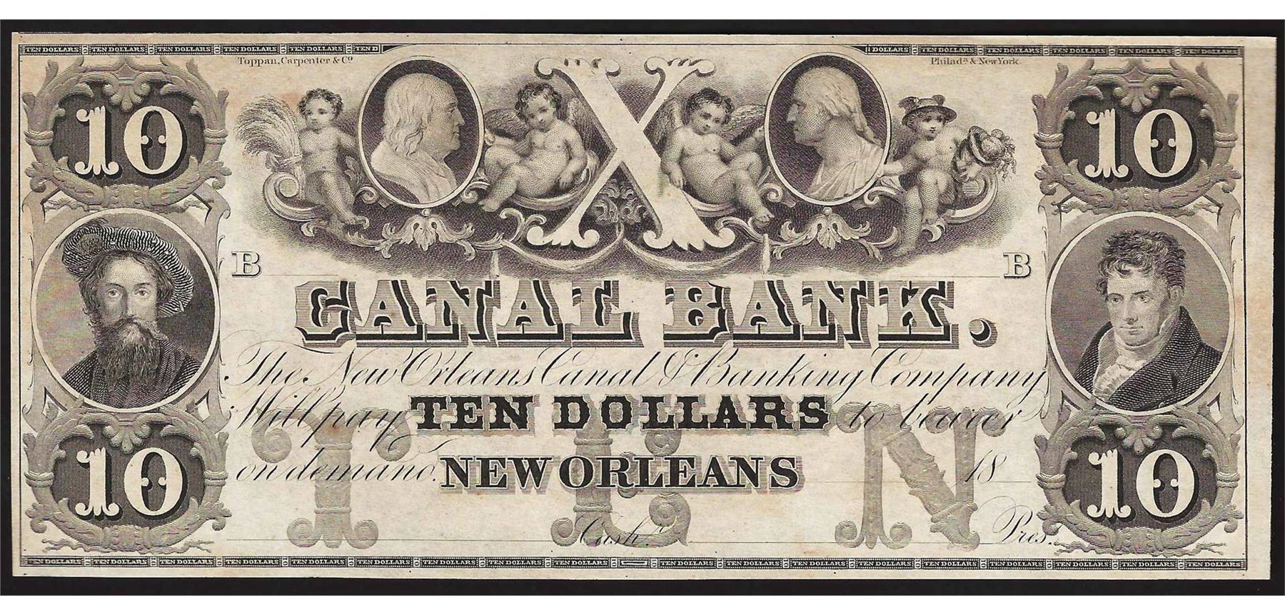 One 1800's $10 The New Orleans Canal & Banking Company Obsolete Note.