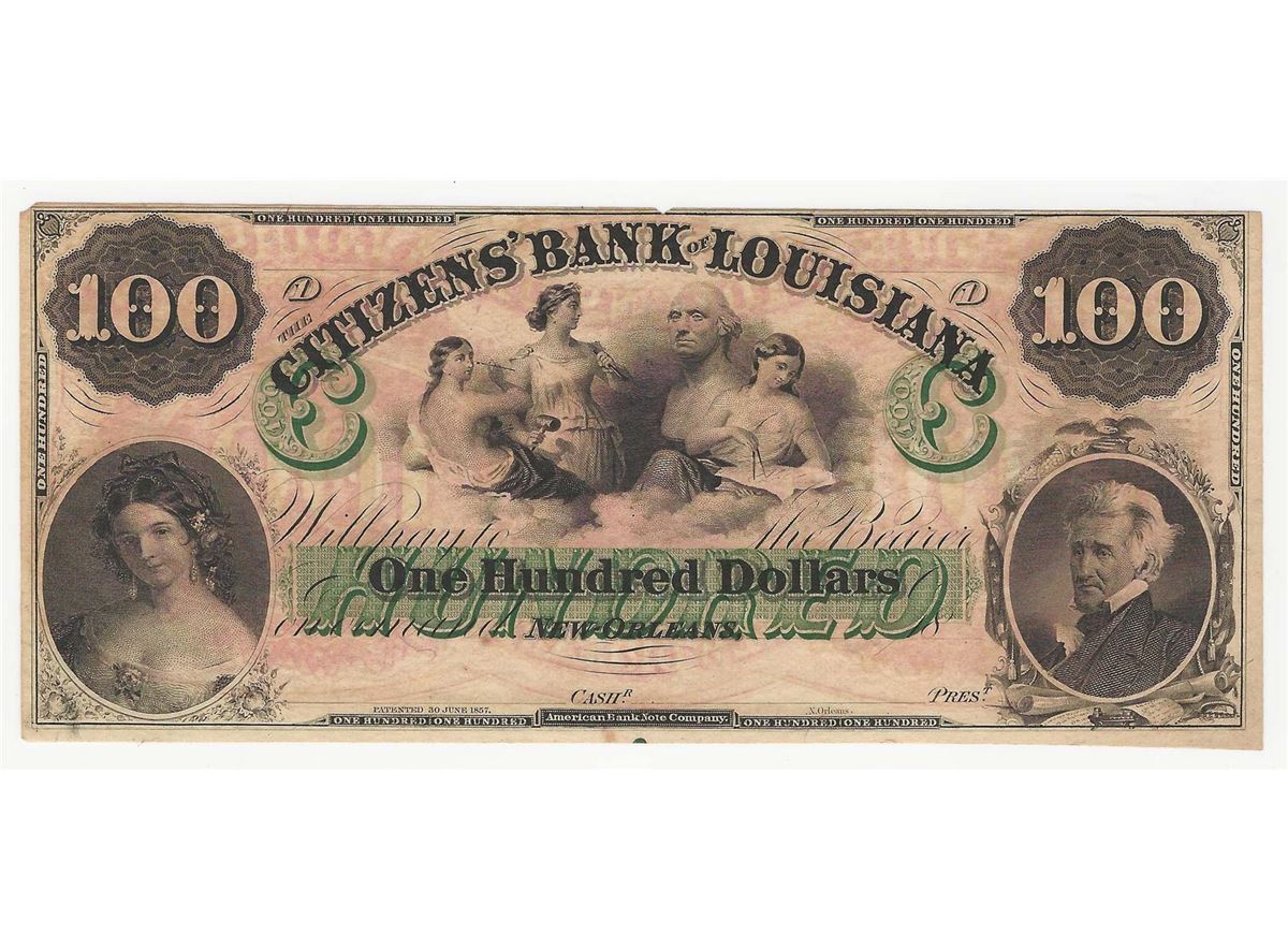 One 1800's $100 Citizens Bank of Louisiana New Orleans Obsolete Note.