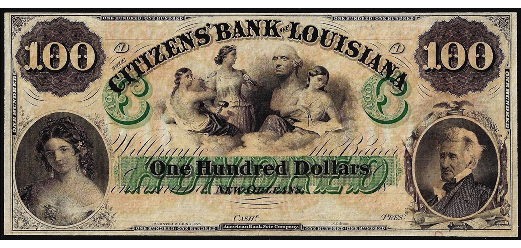 One 1800's $100 Citizens Bank of Louisiana Obsolete Bank Note.