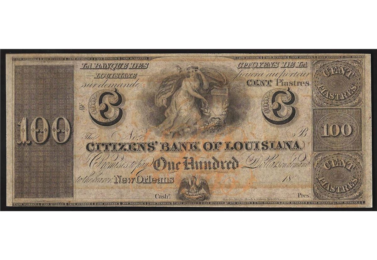 1800's $100 The Citizens Bank of Louisiana Obsolete Bank Note