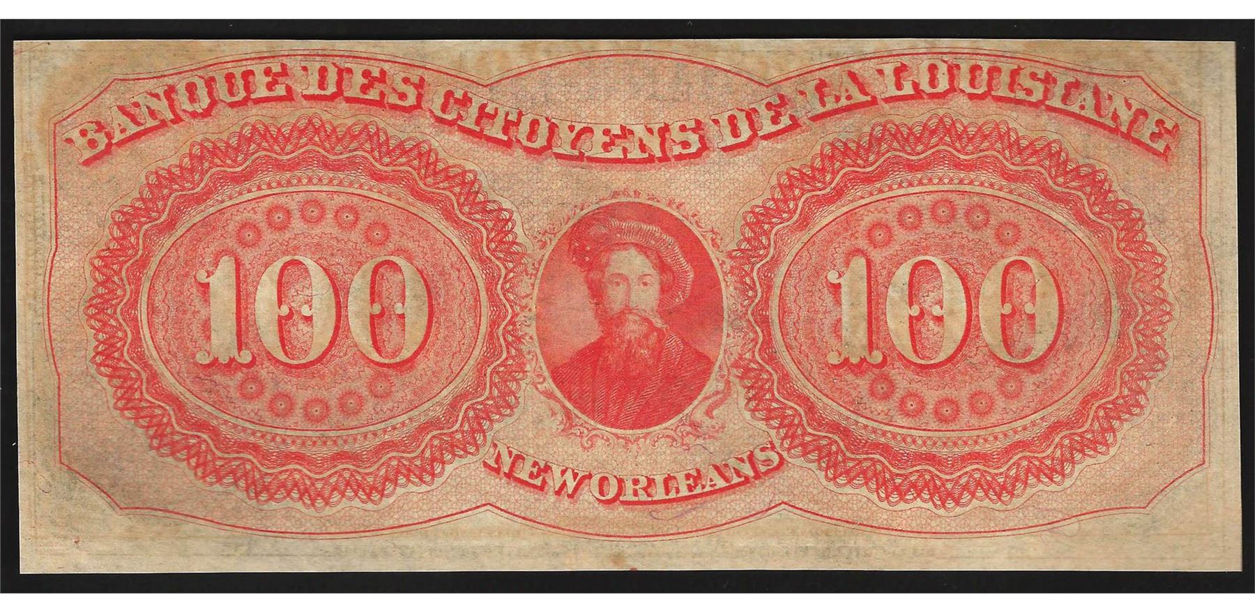 1800's $100 The Citizens Bank of Louisiana Obsolete Bank Note