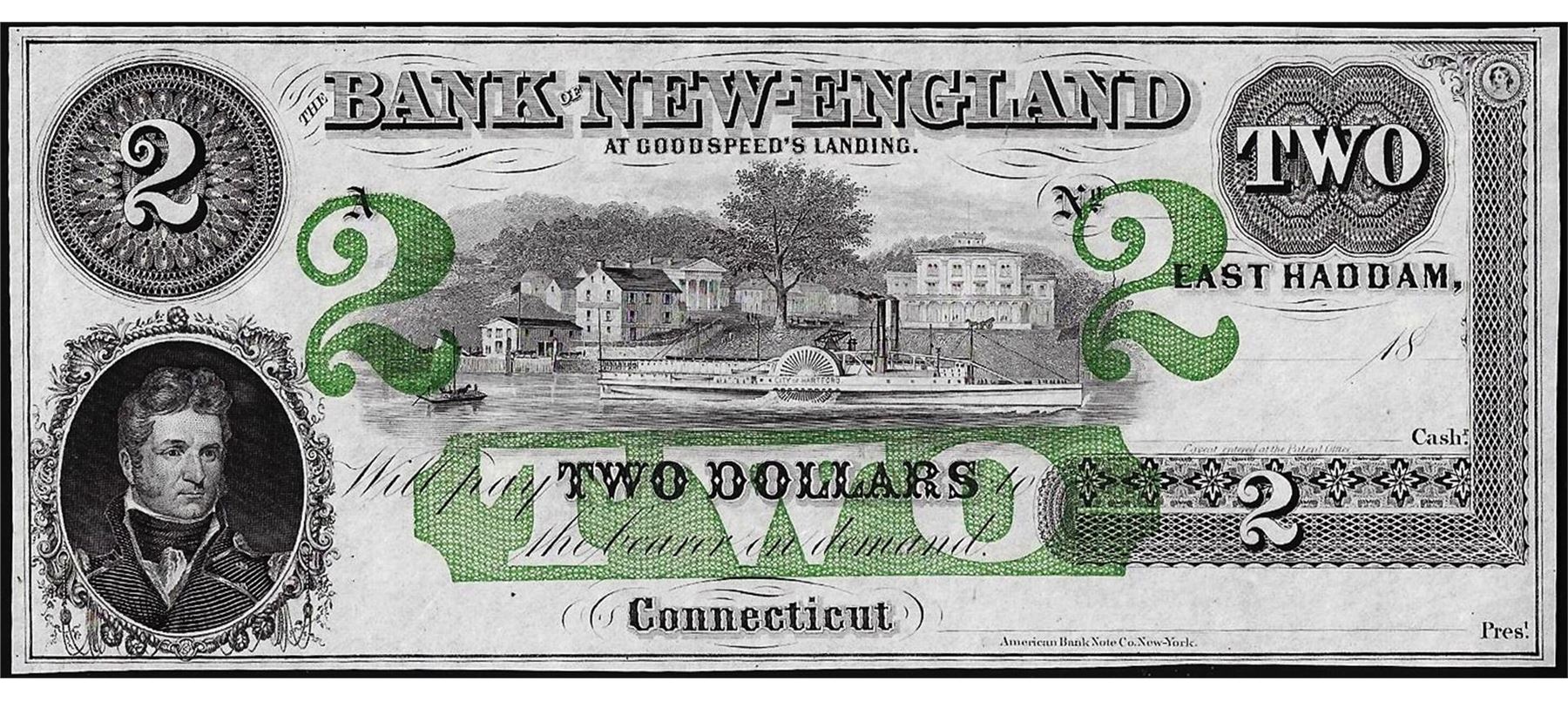 One 1800's $2 Bank of New England Obsolete Note.