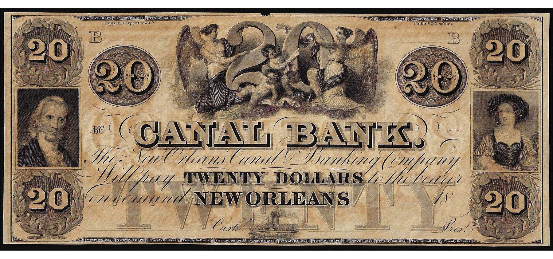 1800's $20 Canal Bank New Orleans, LA Obsolete Bank Note