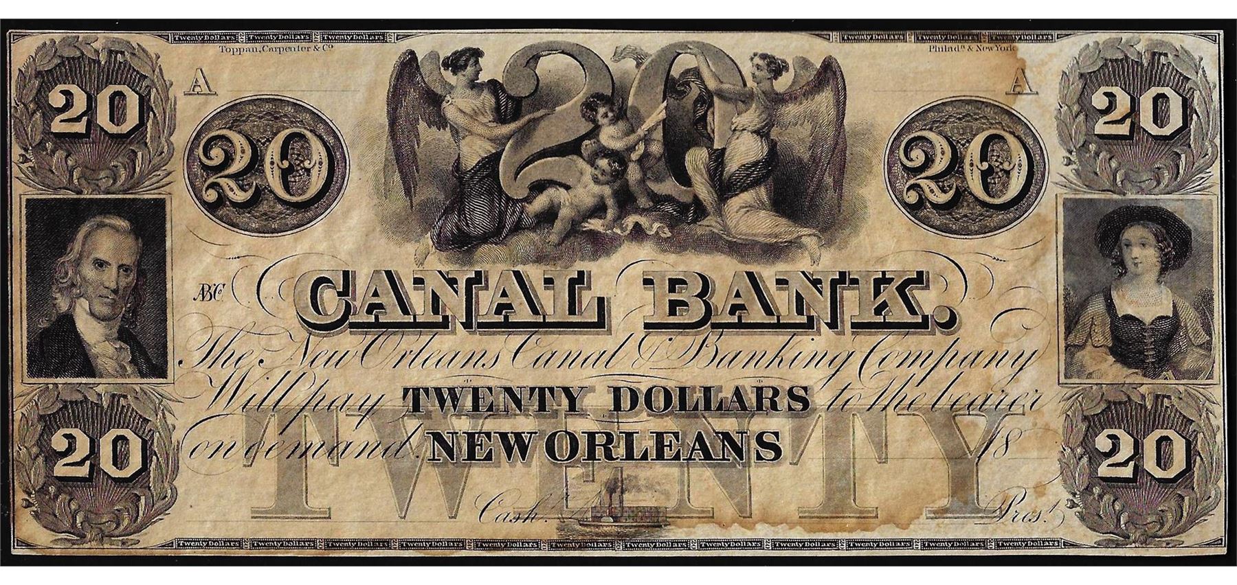 1800's $20 Canal Bank New Orleans, LA Obsolete Bank Note