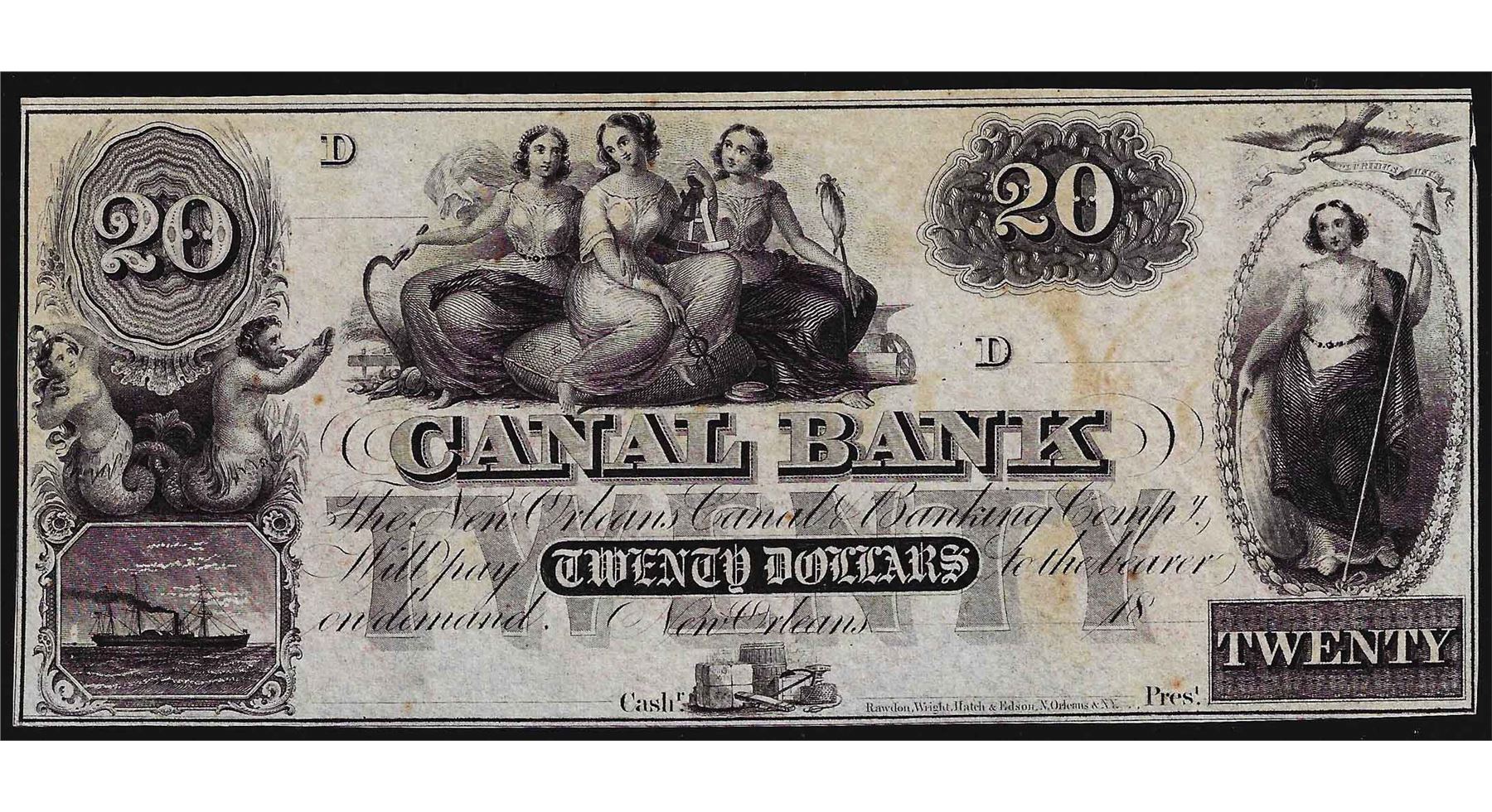 One 1800's $20 Canal Bank New Orleans Obsolete Bank Note.