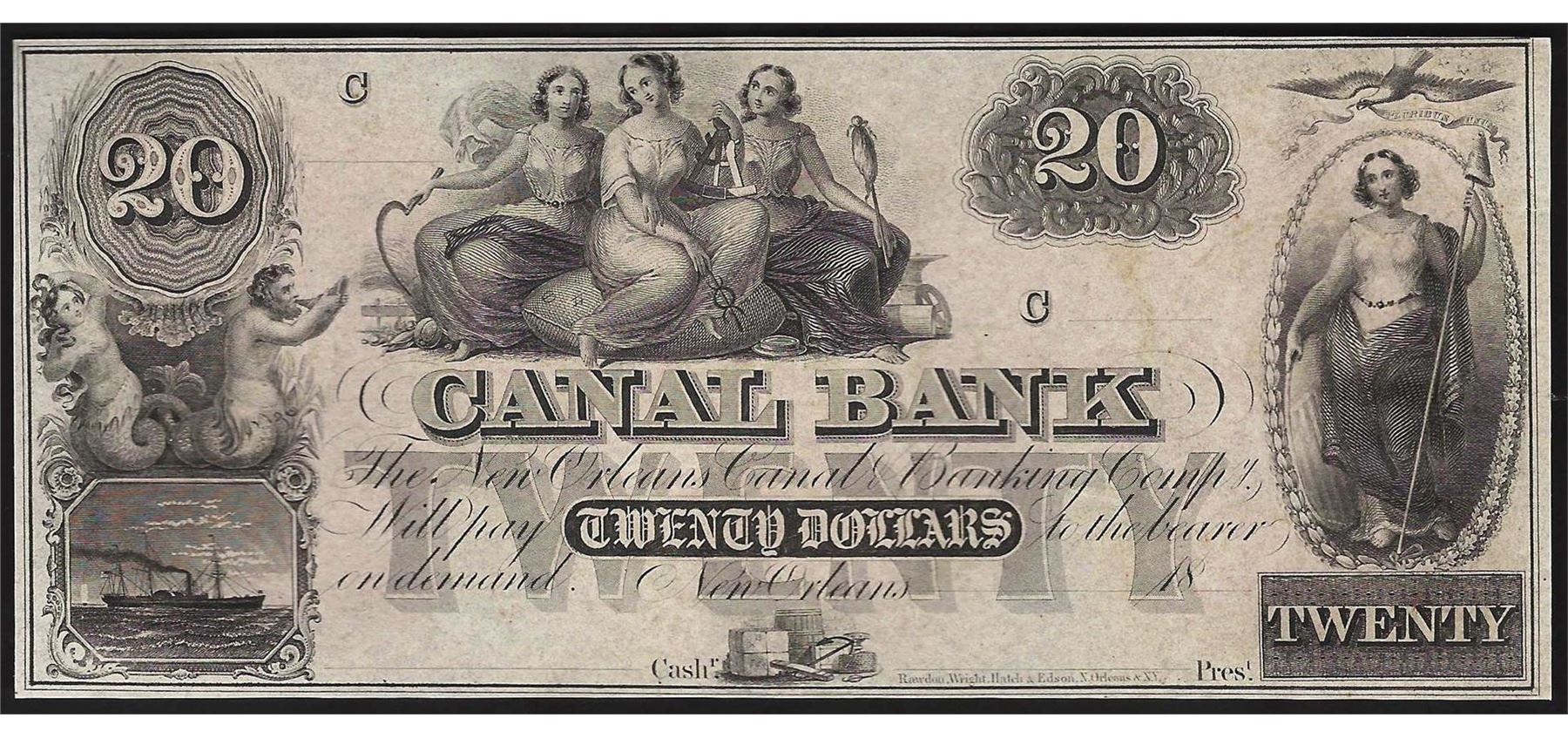 One 1800's $20 Canal Bank New Orleans Obsolete Note.