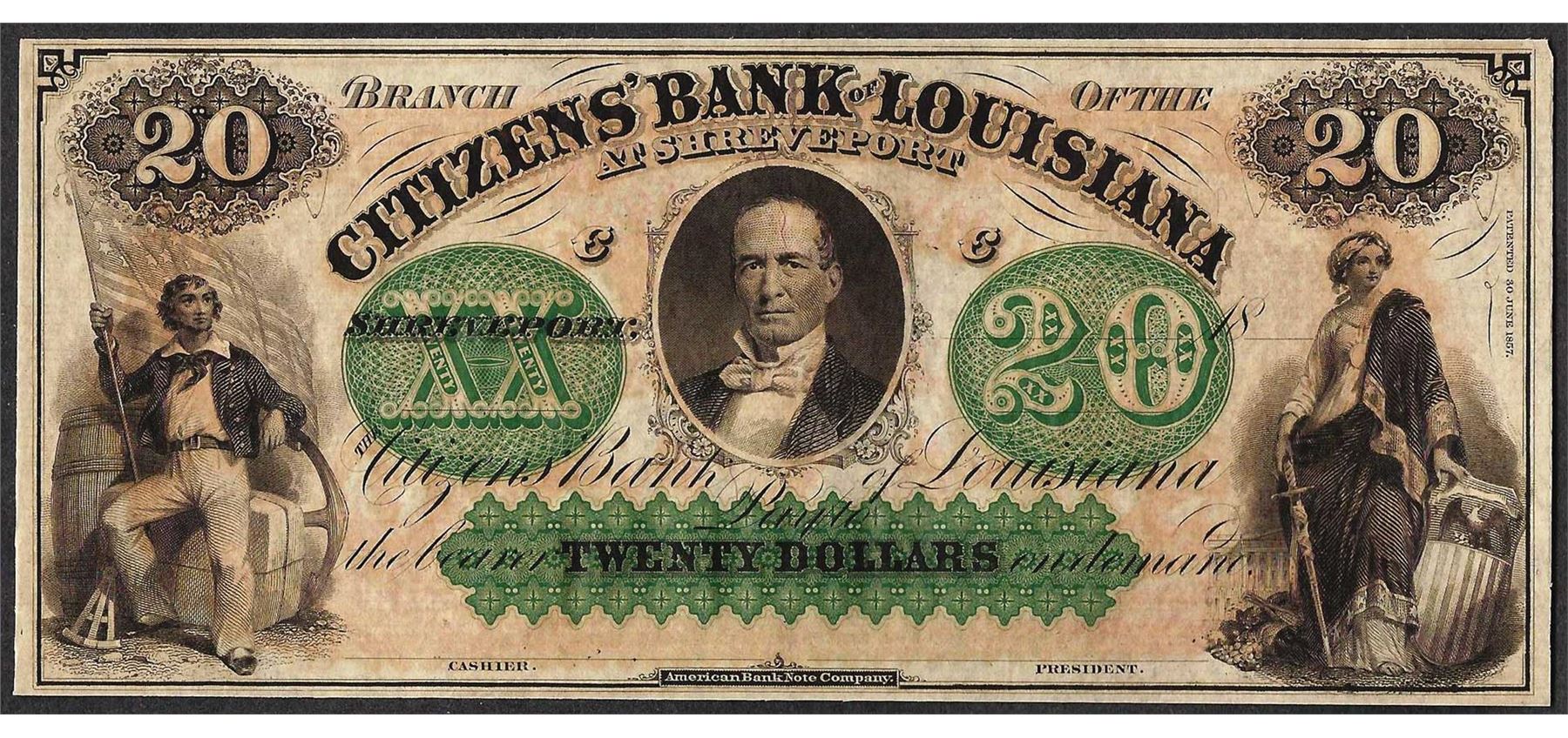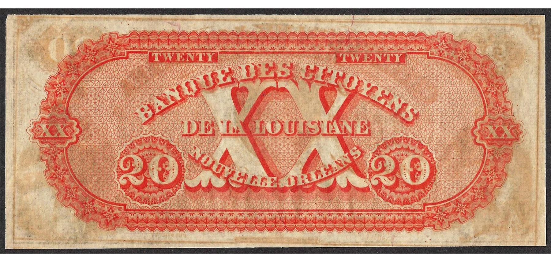 One 1800's $20 Citizens Bank of Louisiana Obsolete Note.