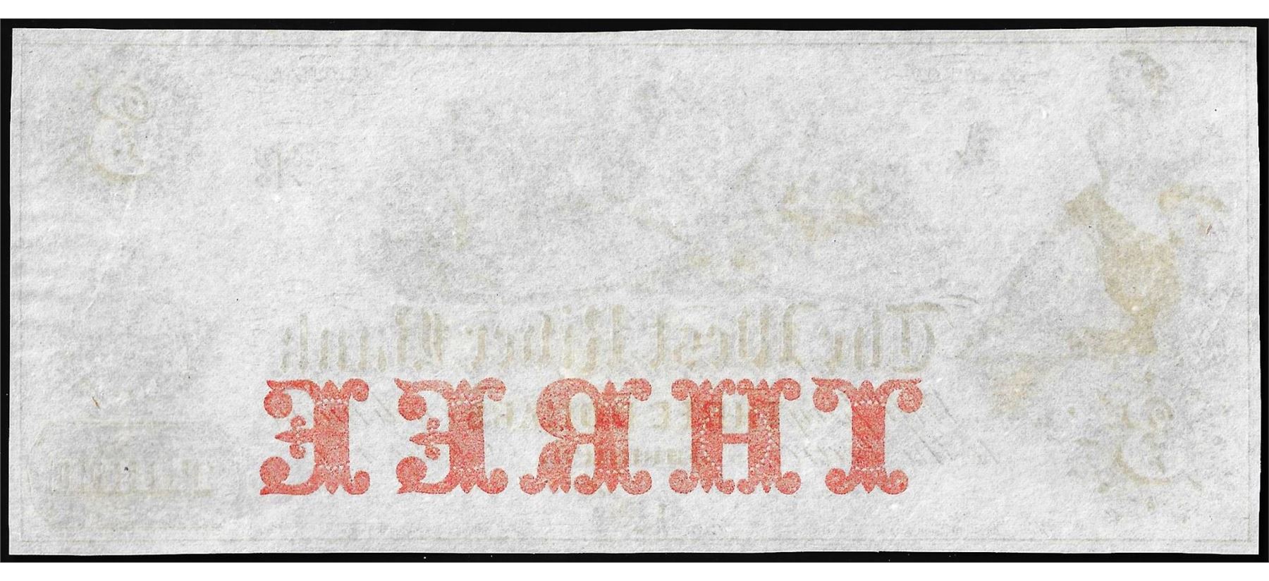 One 1800's $3 West River Bank Jamaica, Vermont Obsolete Bank Note.