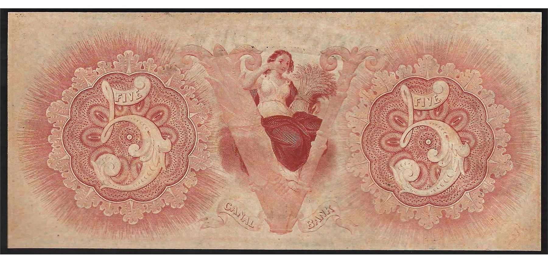 One 1800's $5 Canal Bank New Orleans Obsolete Note.