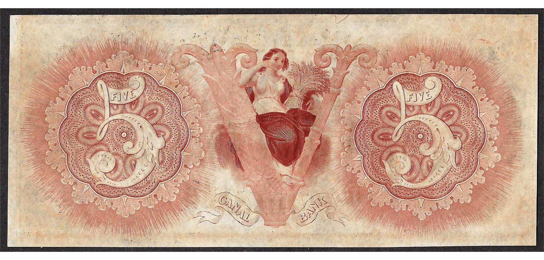 One 1800's $5 Canal Bank New Orleans Obsolete Note.