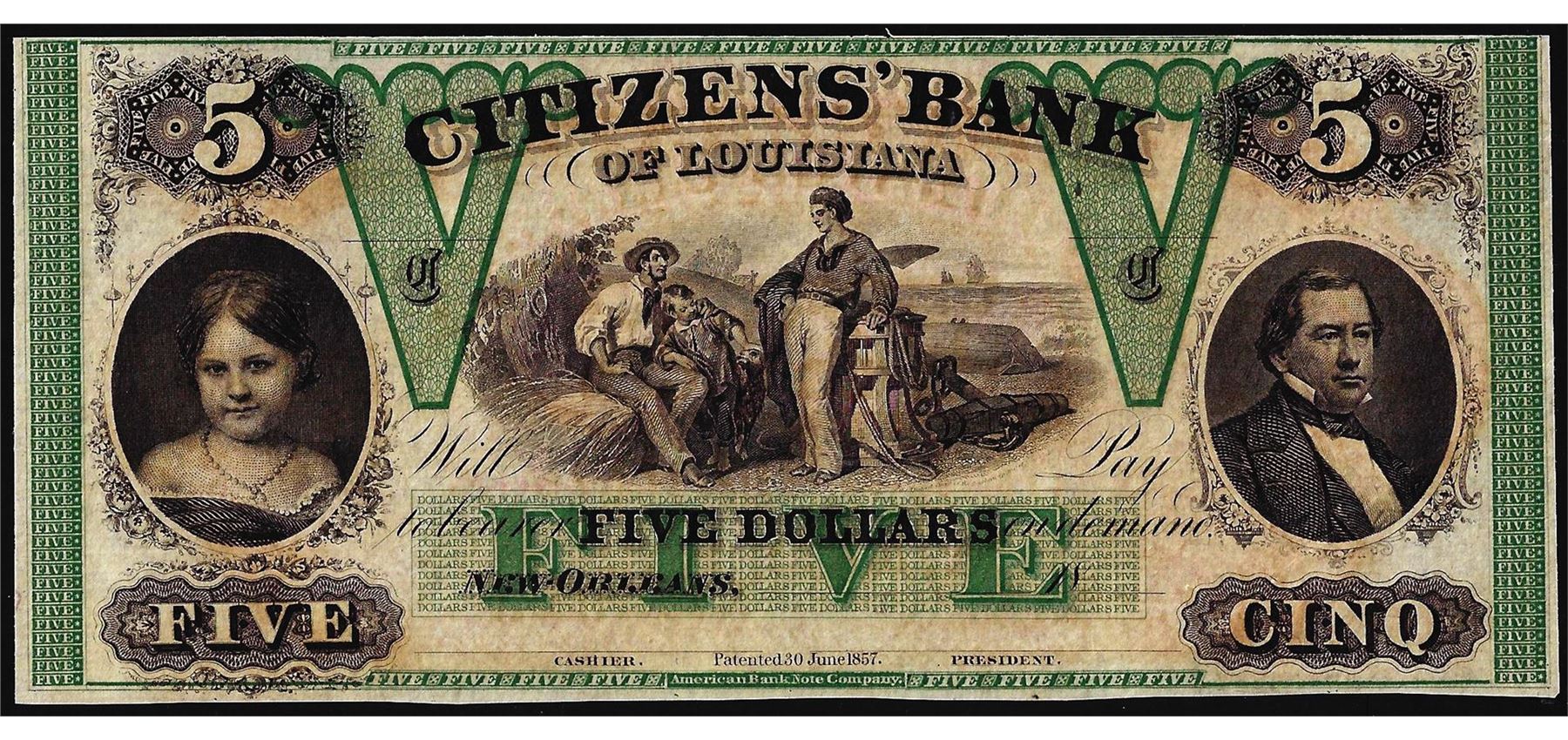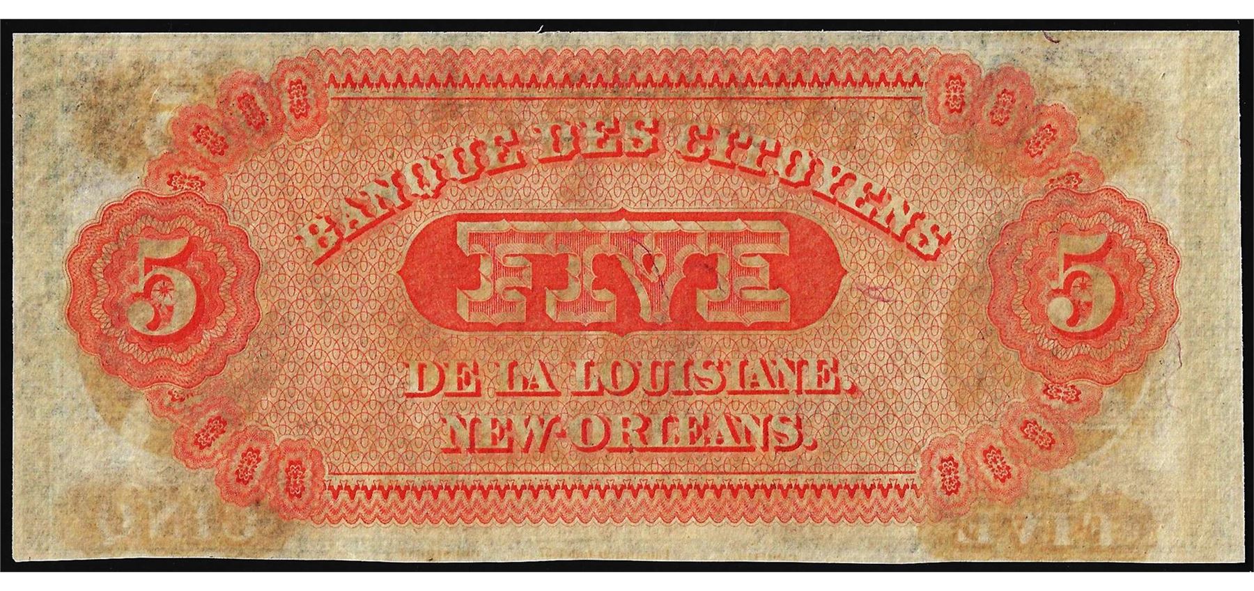1800's $5 Citizens Bank Louisiana New Orleans, LA Obsolete Banknote