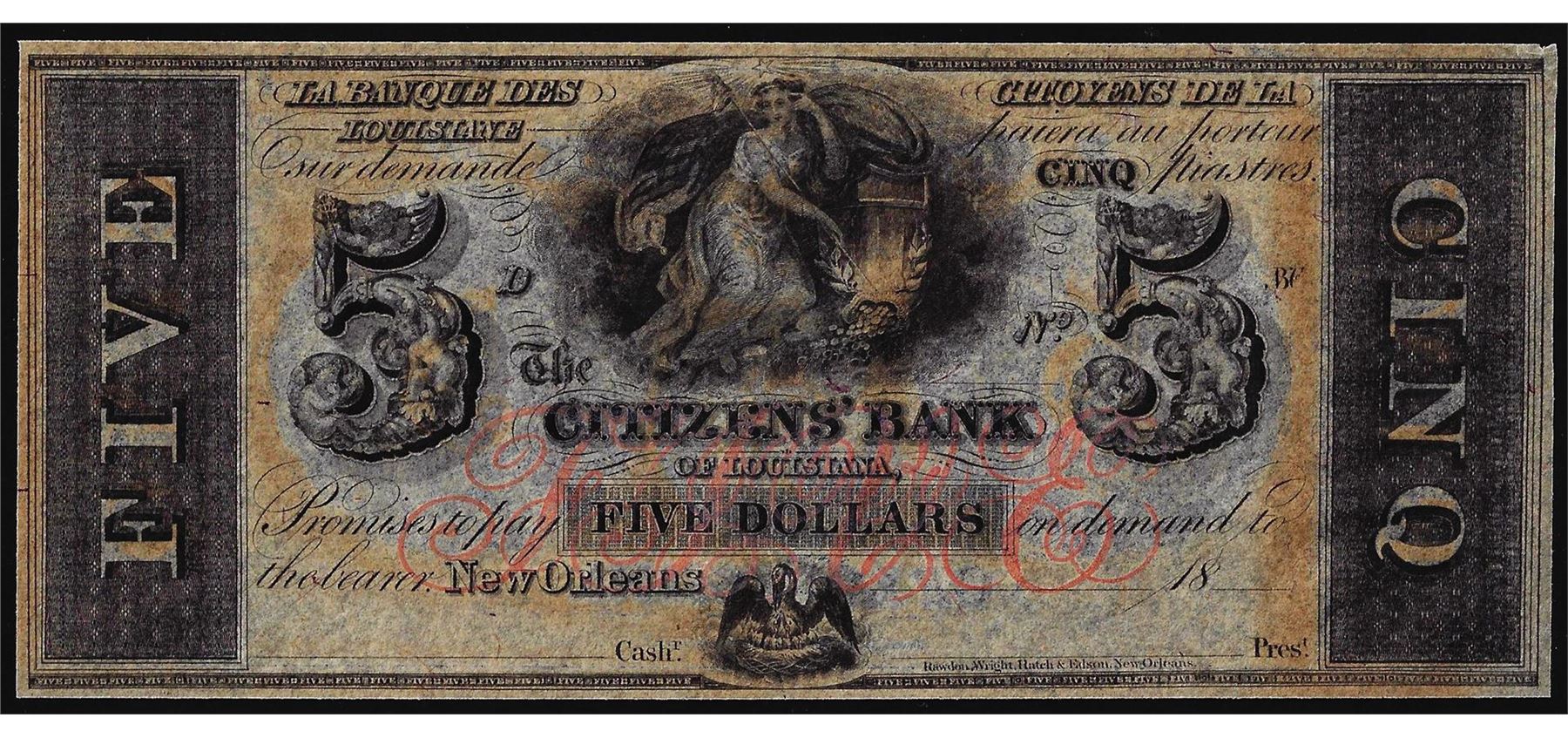 1800's $5 Citizens Bank Louisiana New Orleans, LA Obsolete Banknote