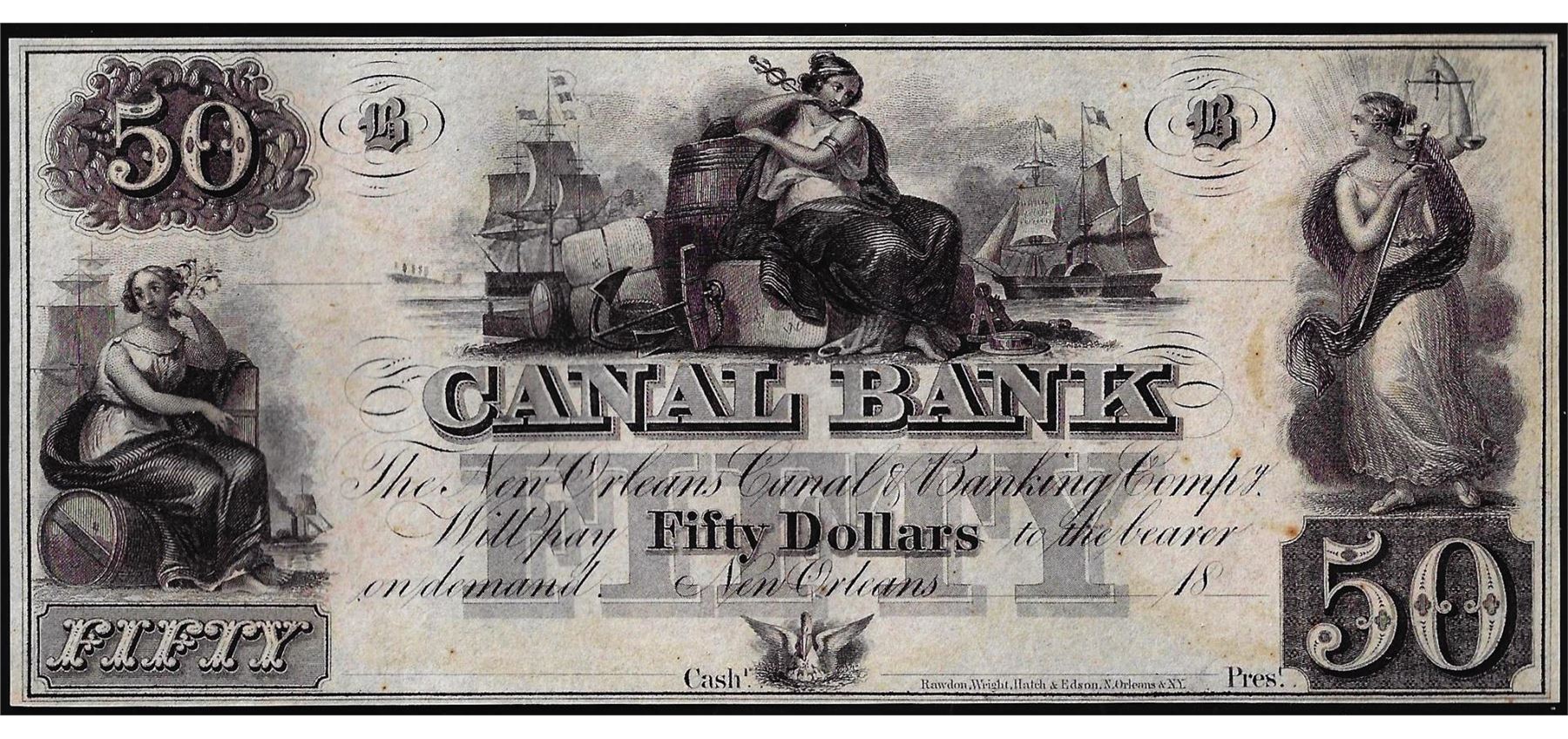 1800's $50 Canal Bank New Orleans, LA Obsolete Bank Note