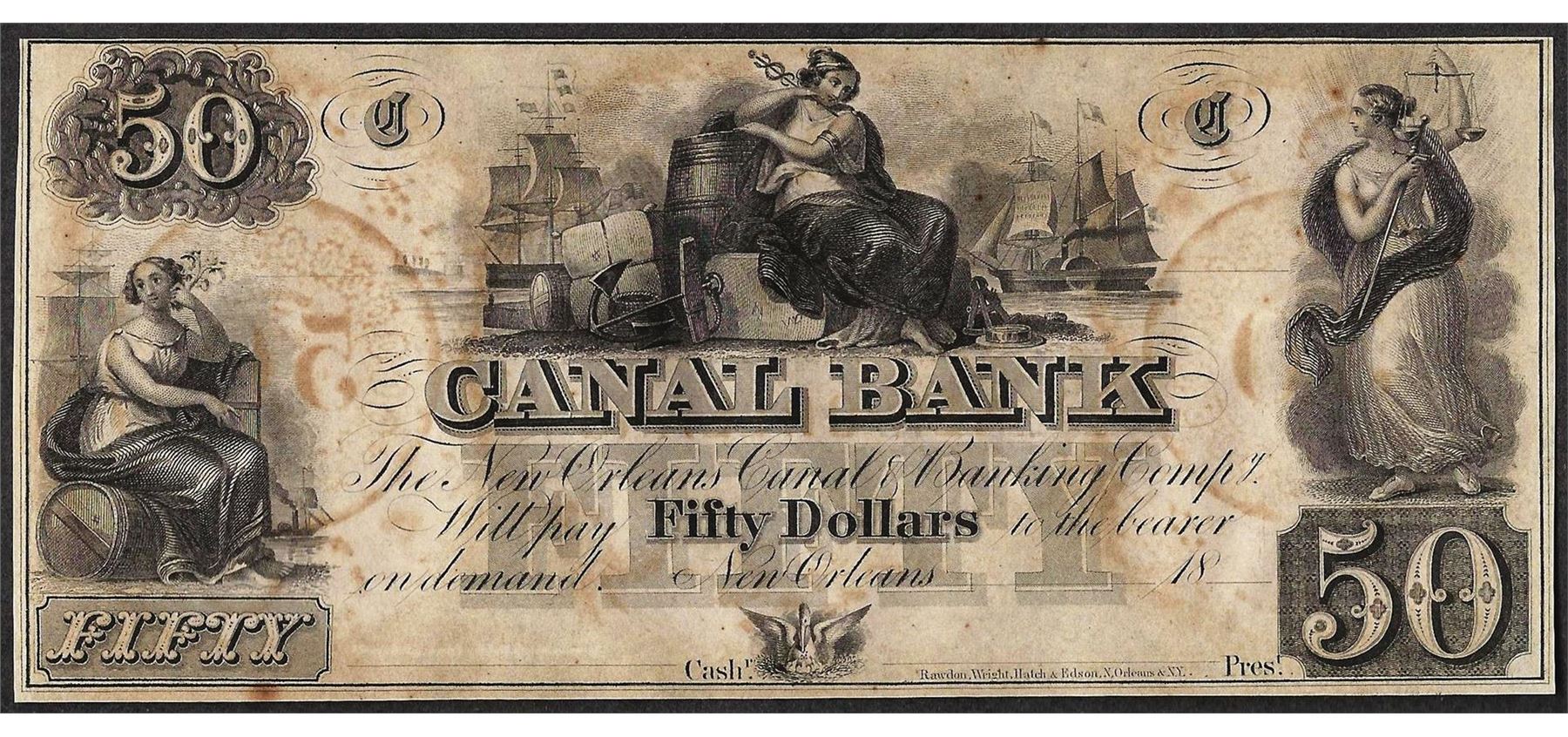 One 1800's $50 Canal Bank New Orleans Obsolete Note.