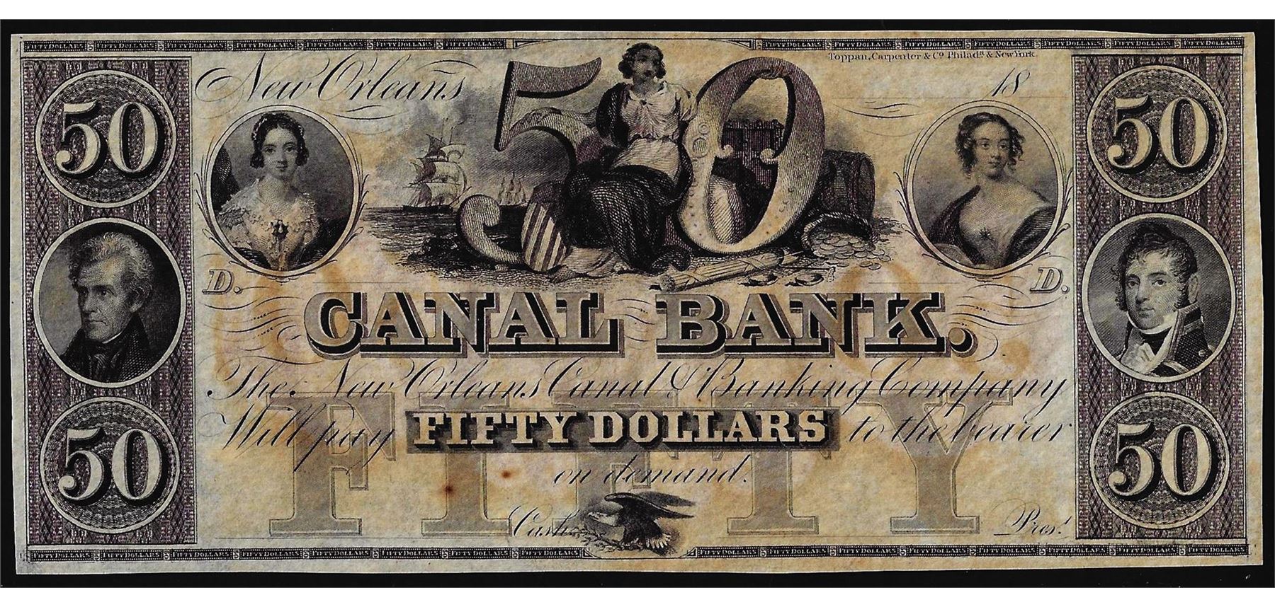 One 1800's $50 Canal Bank New Orleans Obsolete Note.