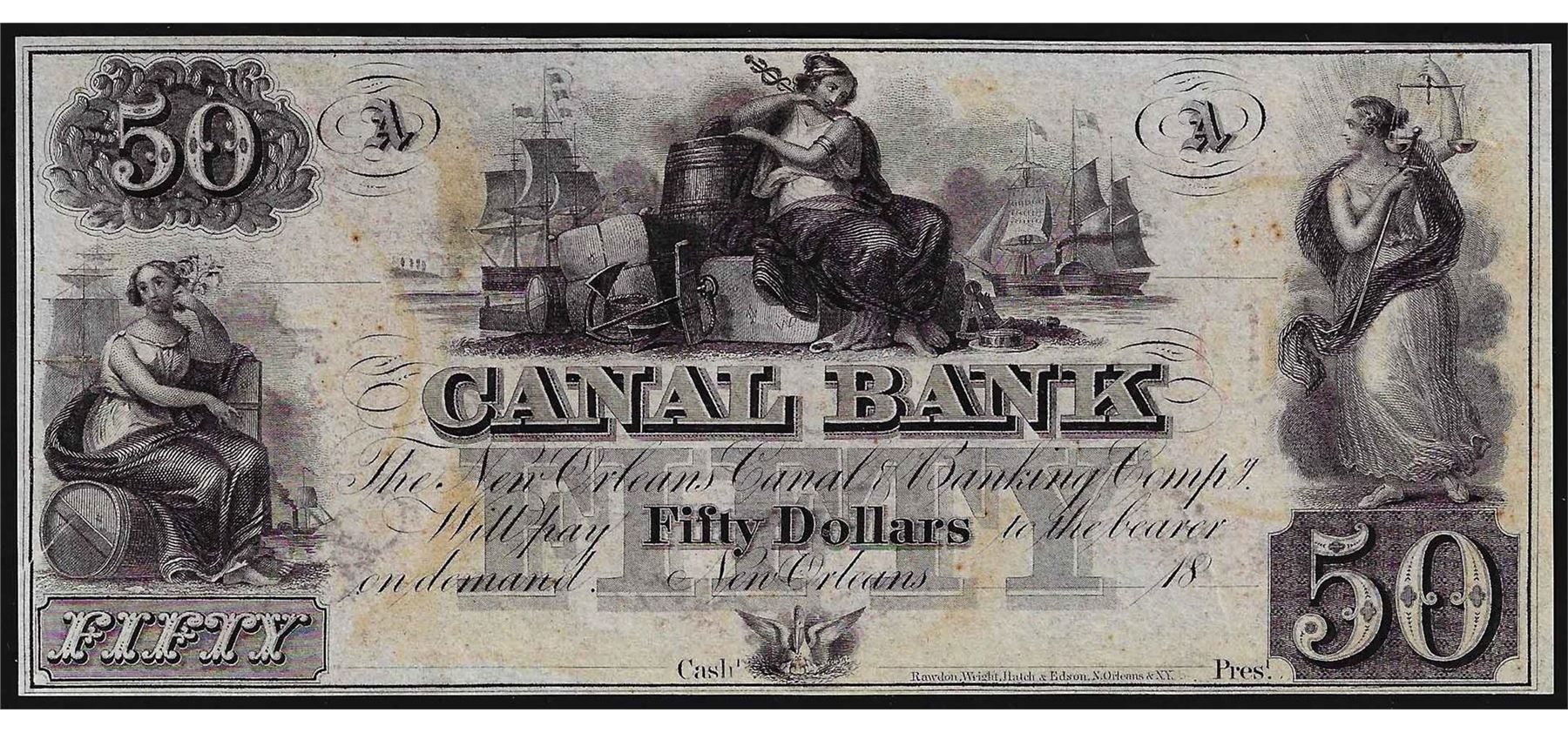 One 1800's $50 Canal Bank of New Orleans Obsolete Note.