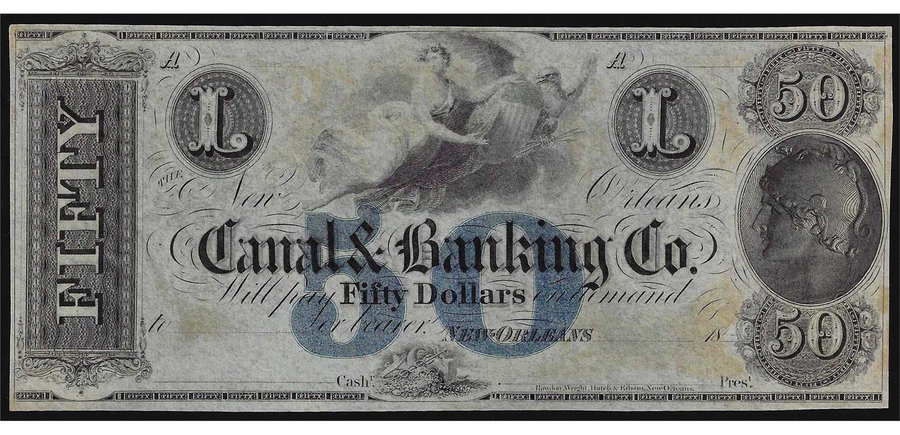 1800's $50 Canal & Banking Co. New Orleans Obsolete Bank Note