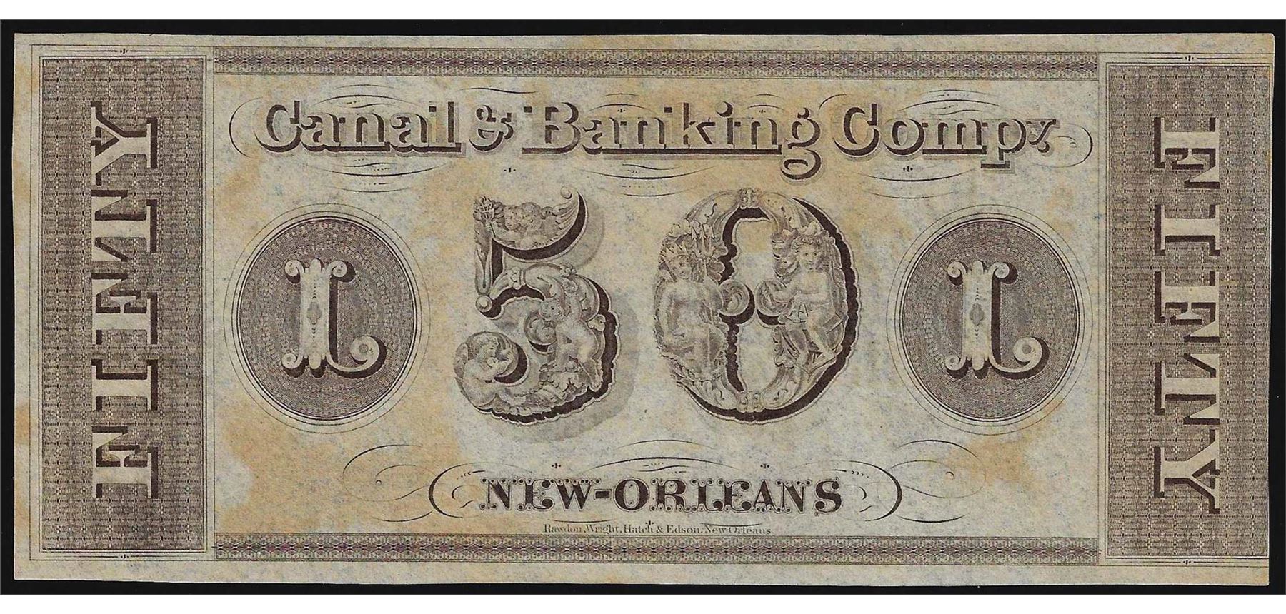 One 1800's $50 Canal & Banking Co. New Orleans Obsolete Bank Note.