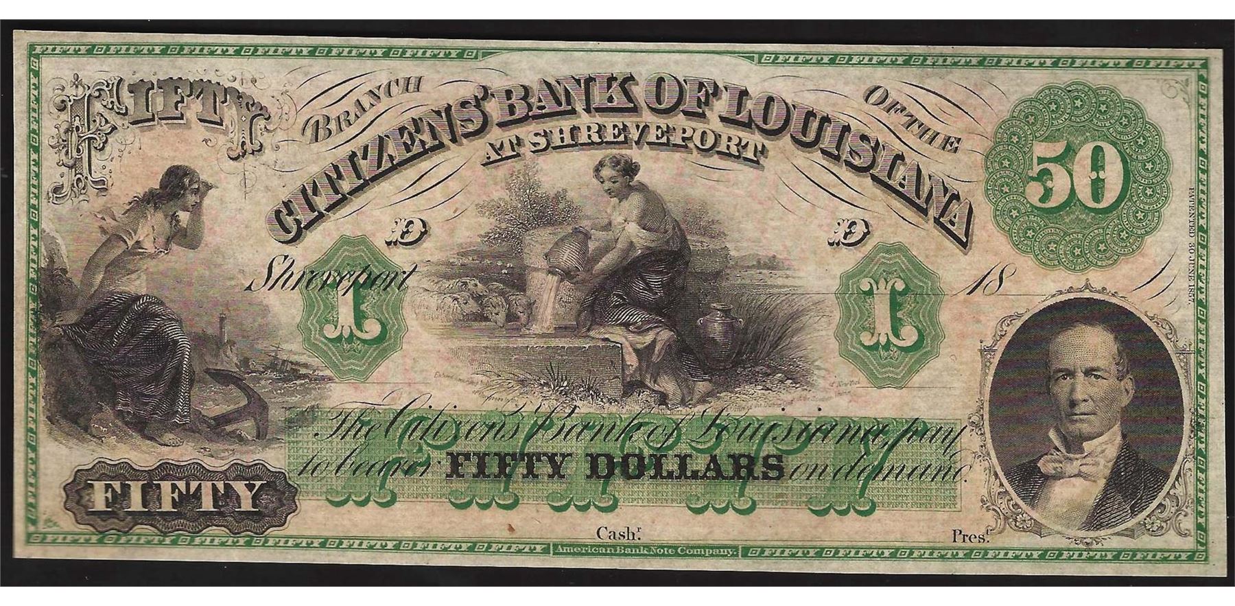 One 1800's $50 Citizens Bank of Louisiana Obsolete Note.