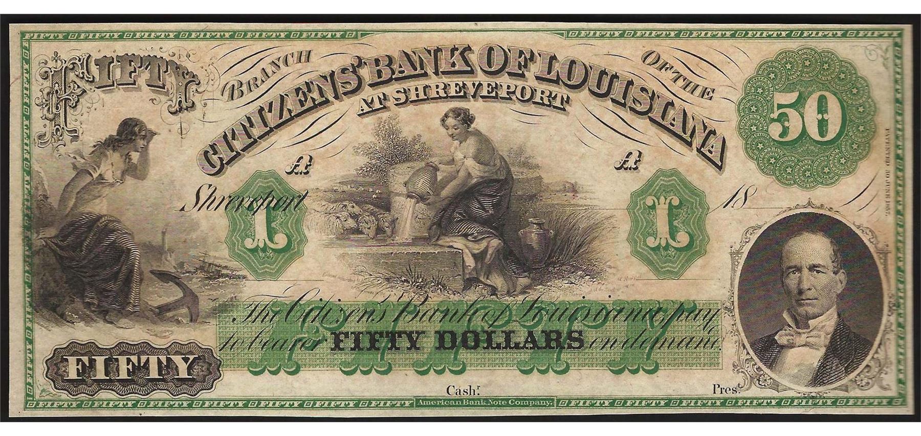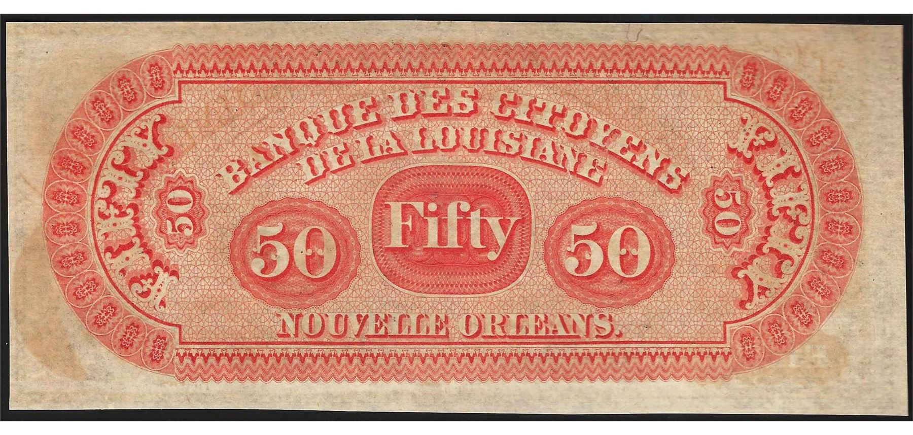 One 1800's $50 Citizens Bank of Louisiana Obsolete Note.