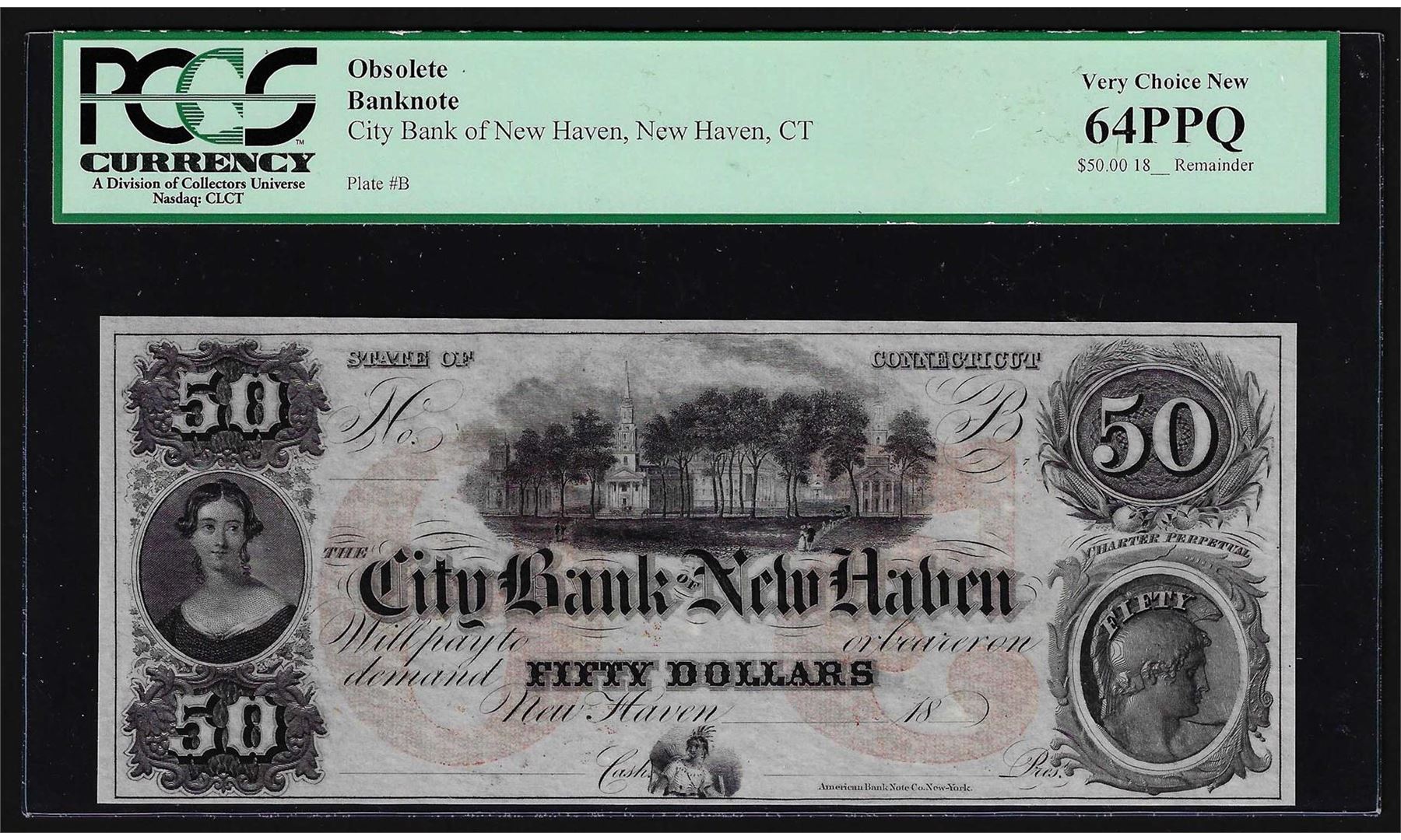 1800's $50 City Bank of New Haven, CT Obsolete Bank Note PCGS Very Choice New 64