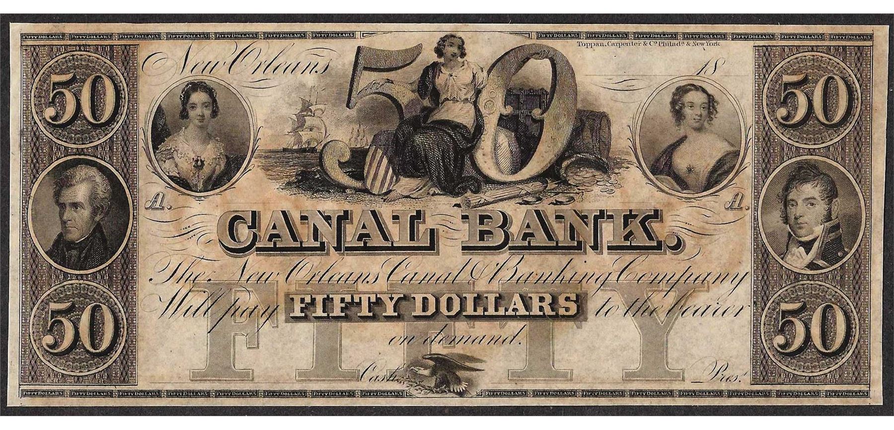 One 1800's $50 New Orleans Canal Bank Obsolete Note.