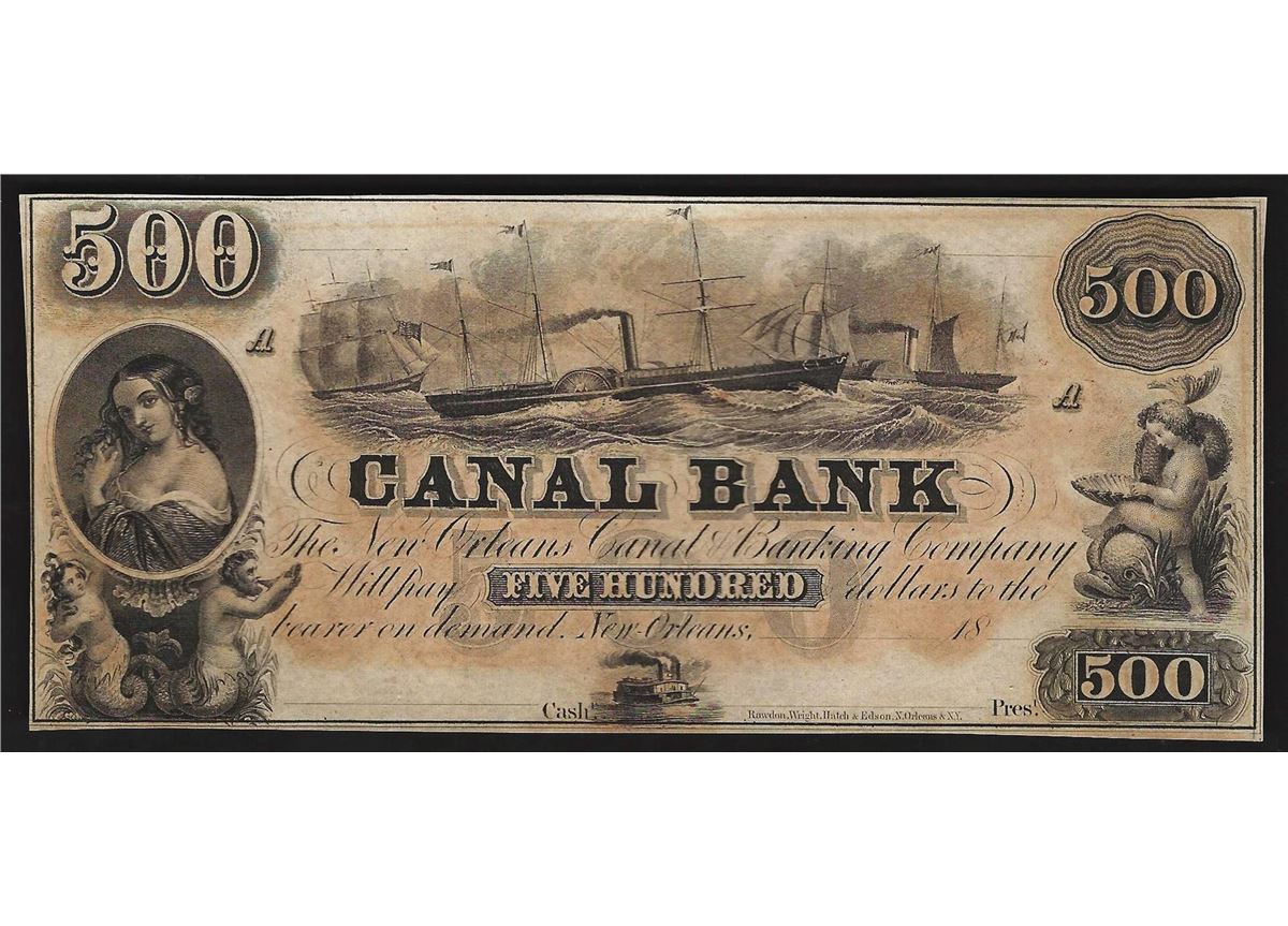 One 1800's $500 Canal Bank of New Orleans Obsolete Bank Note.