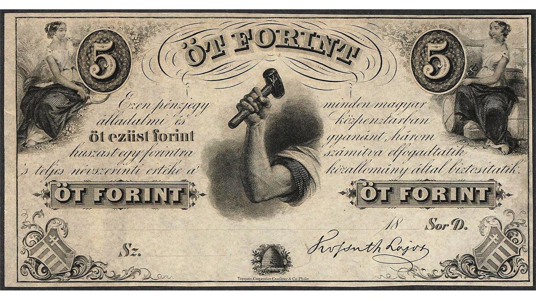 One 1800's Hungary 5 OT Forint Obsolete Note.