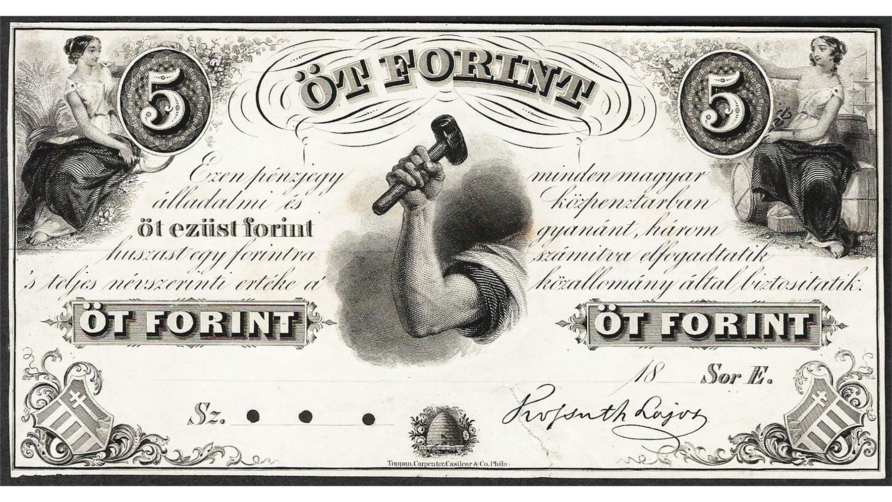 One 1800's Hungary 5 OT Forint Obsolete Note.