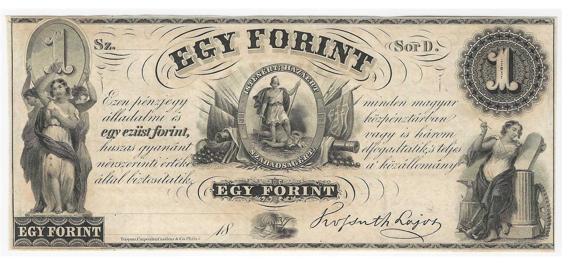 One 1800s $1 Egy Forint Obsolete Bank Note.