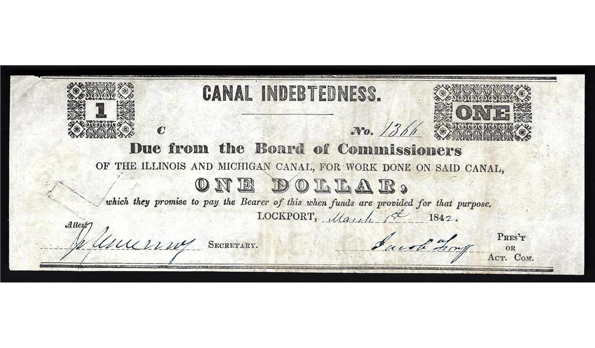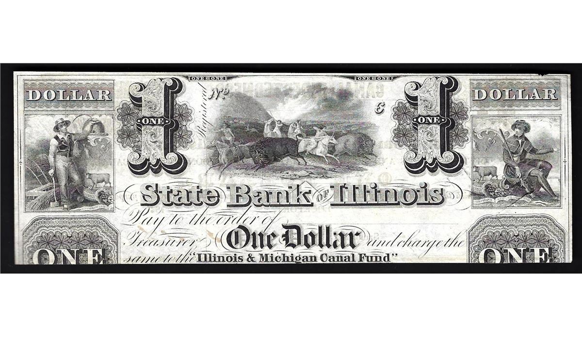 1800s $1 The State Bank of Illinois Obsolete Bank Note Cut Canceled