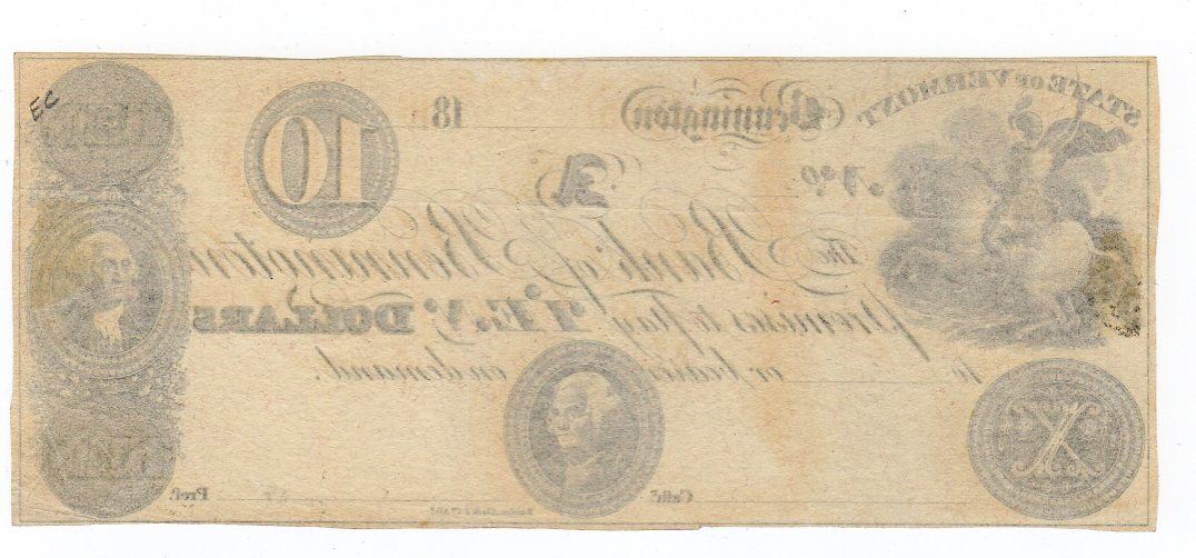 One 1800s $10 The Bank of Bennington Obsolete Note.
