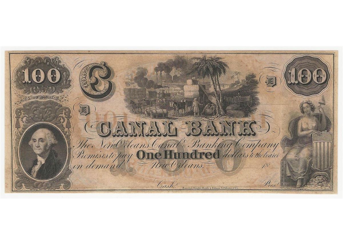 One 1800s $100 The New Orleans Canal & Banking Company Note.