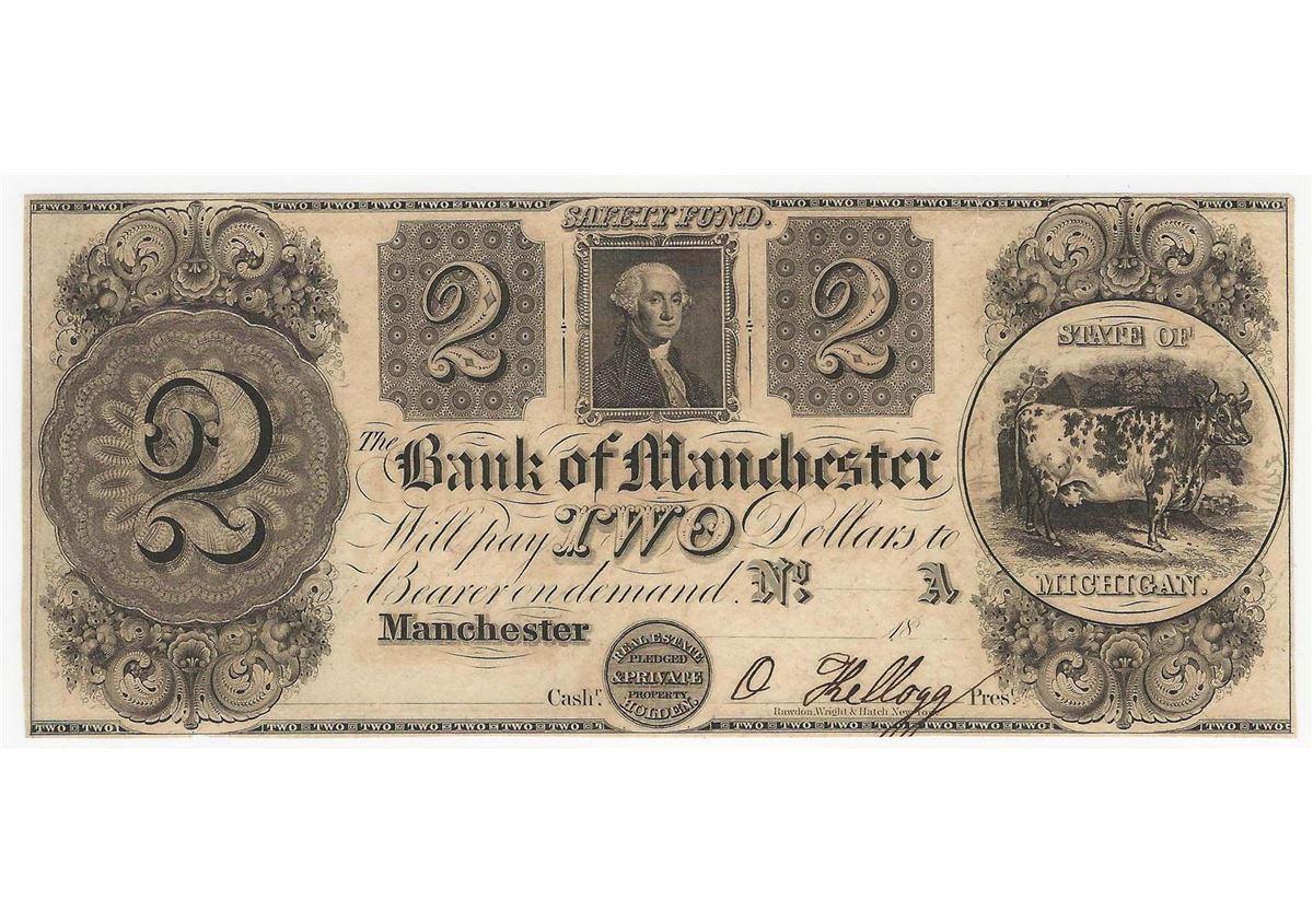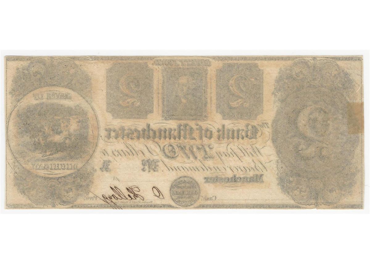 One 1800s $2 The Bank of Manchester Obsolete Bank Note.