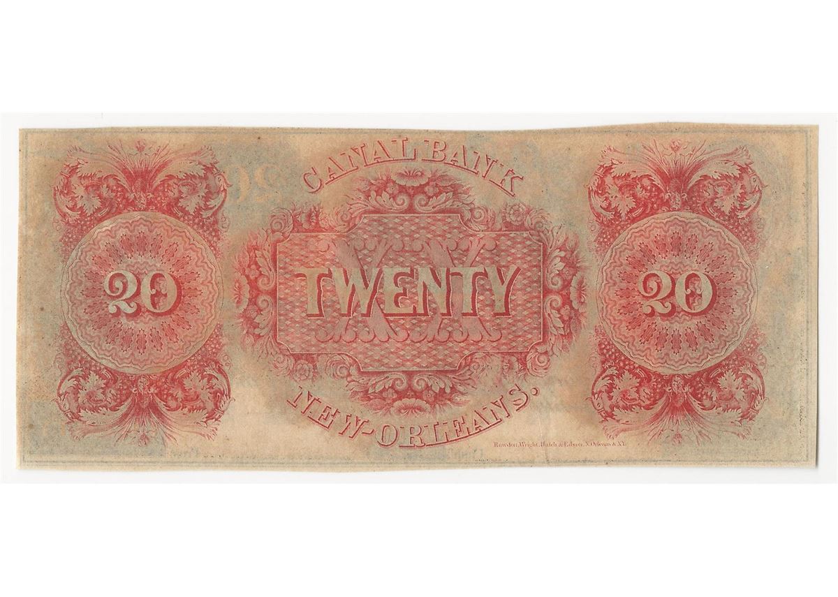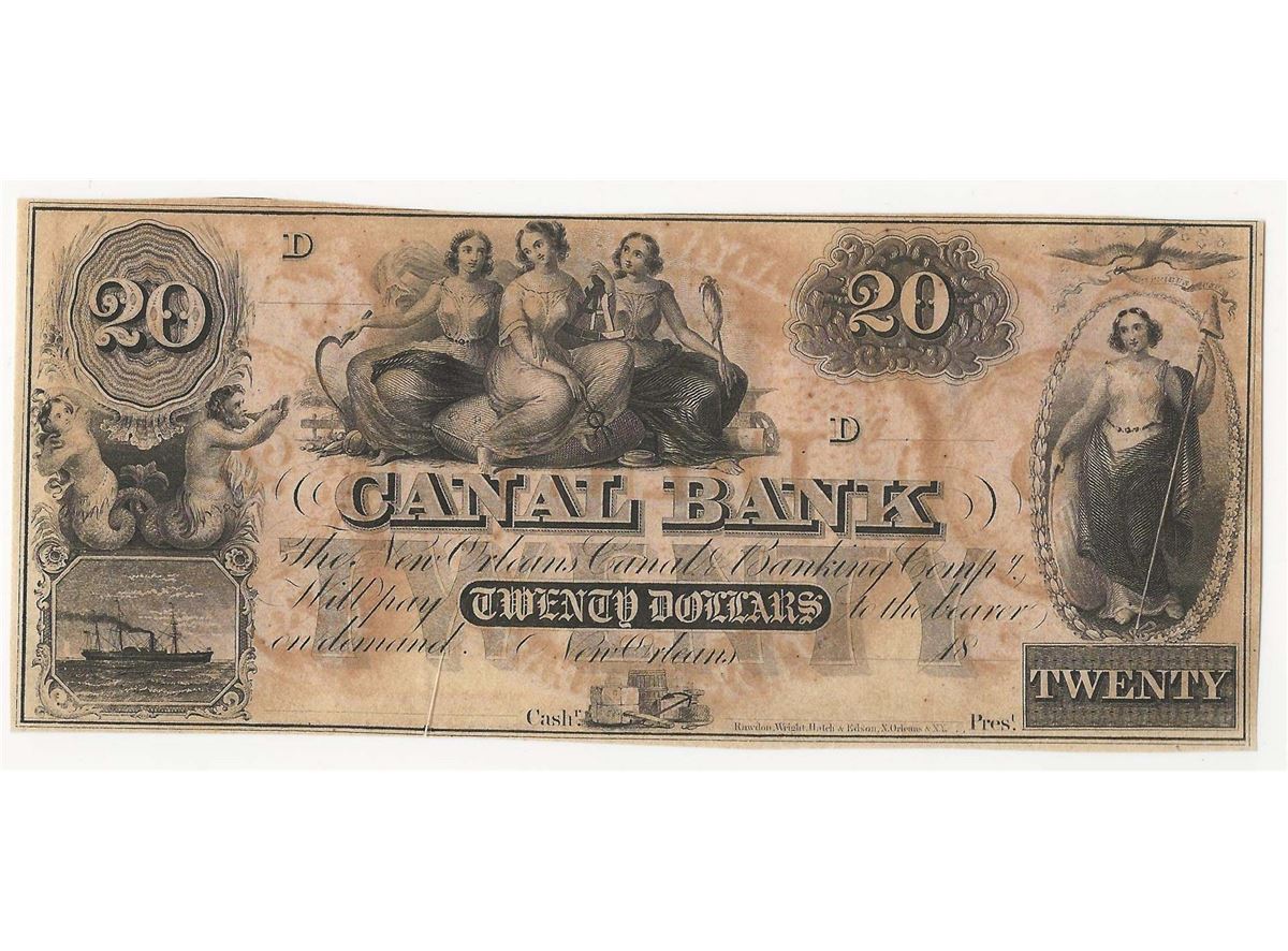 One 1800s $20 Canal Bank New Orleans Obsolete Bank Note.