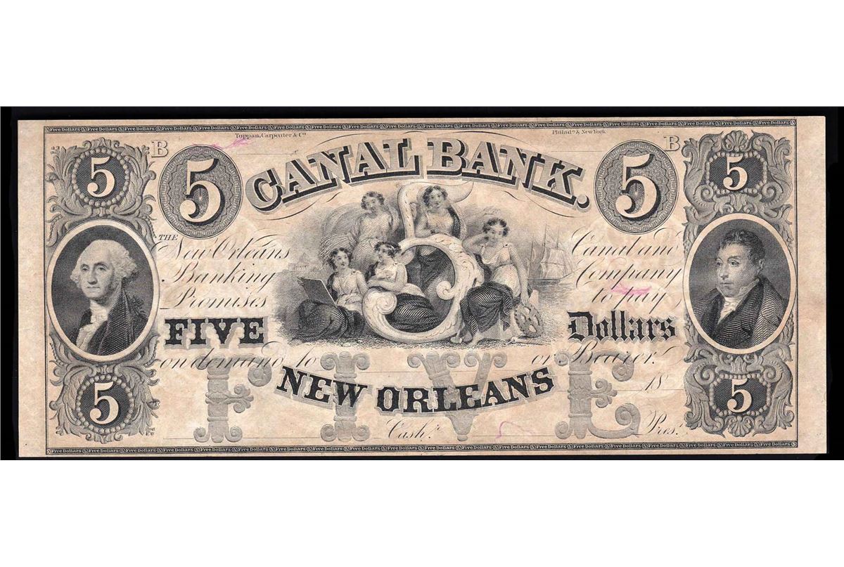 One 1800s $5 Canal Bank New Orleans Obsolete Bank Note.