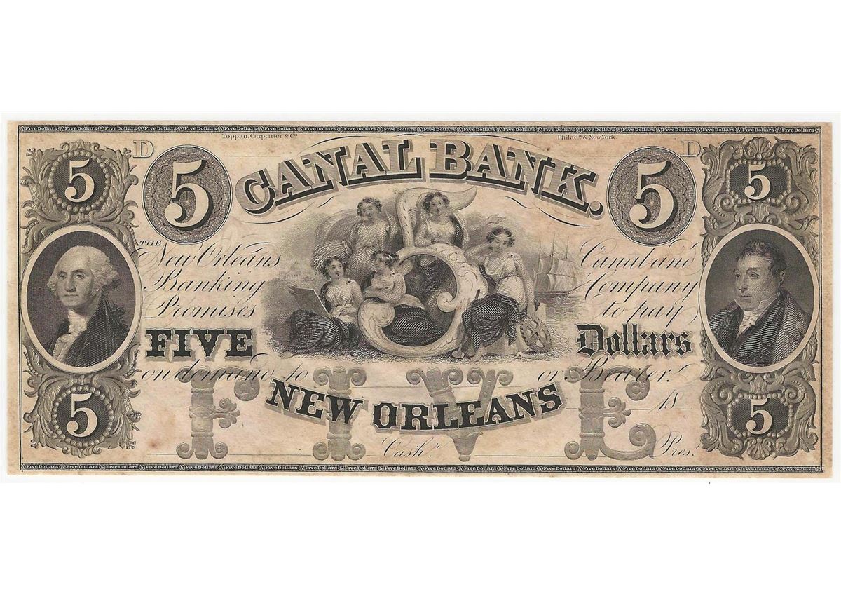 One 1800s $5 Canal Bank New Orleans Obsolete Note.