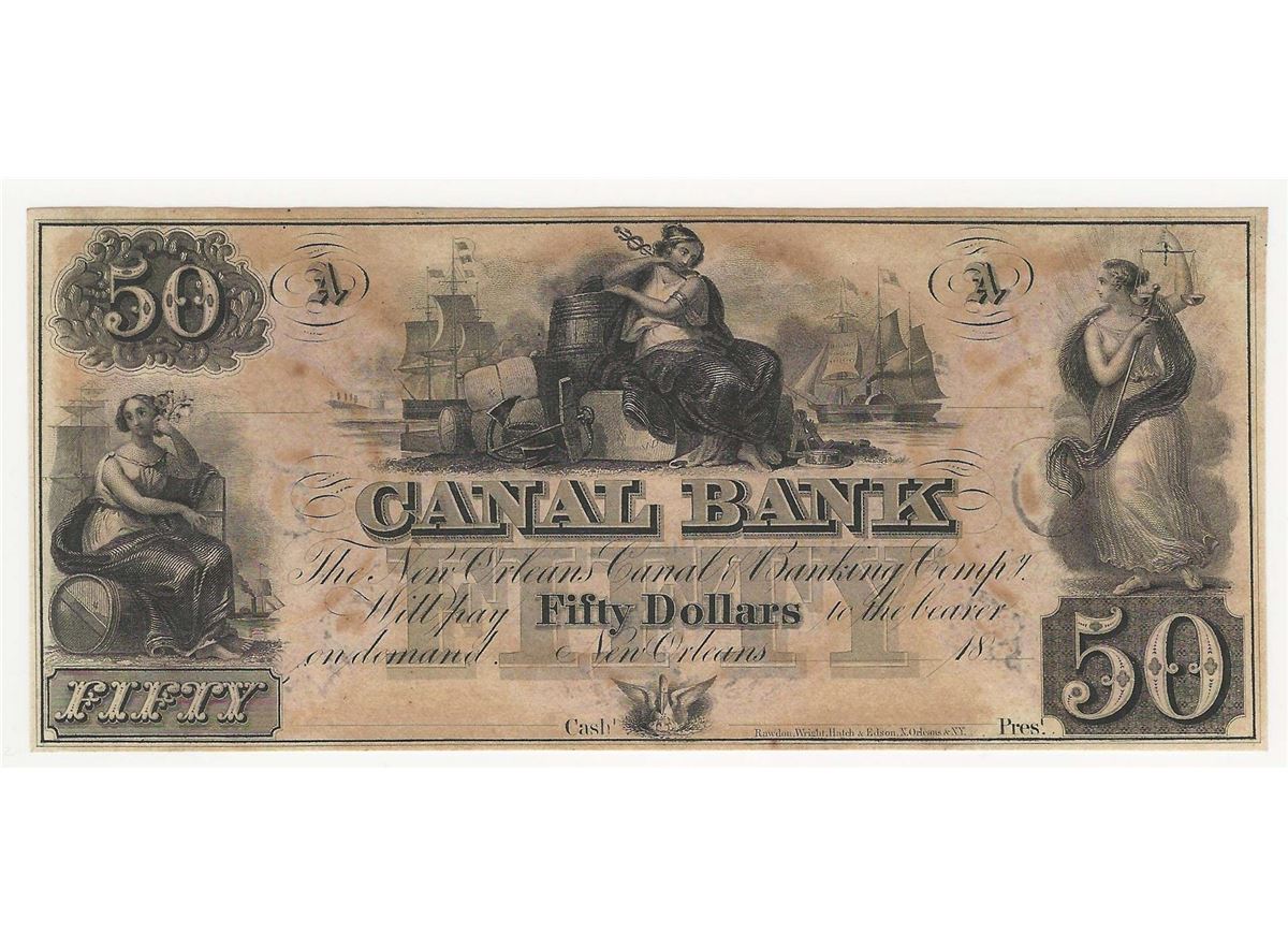 One 1800s $50 Canal Bank New Orleans Obsolete Bank Note.