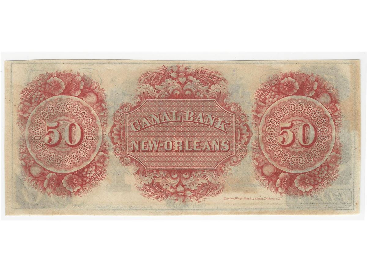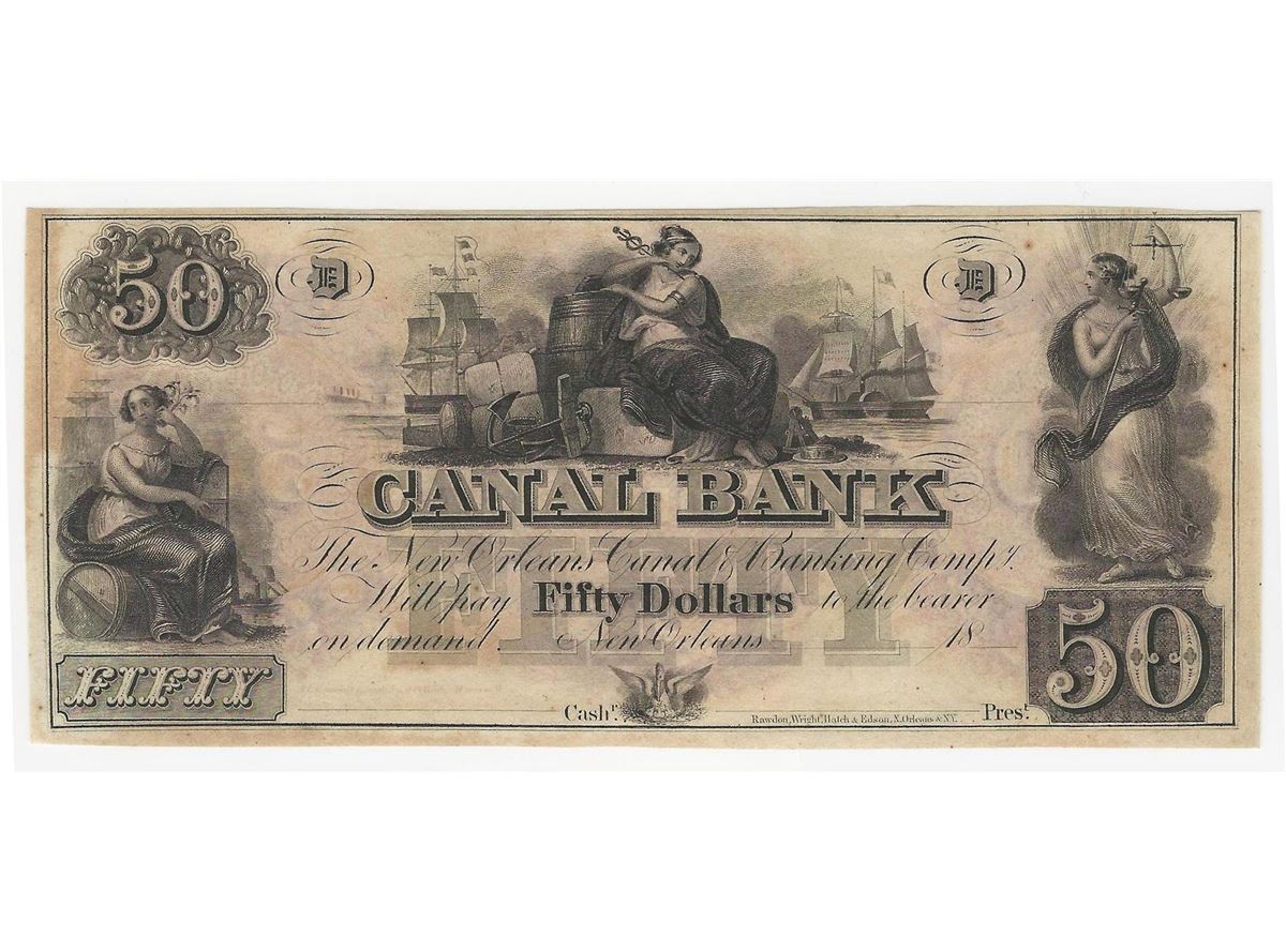 One 1800s $50 The Canal Bank New Orleans Obsolete Bank Note.