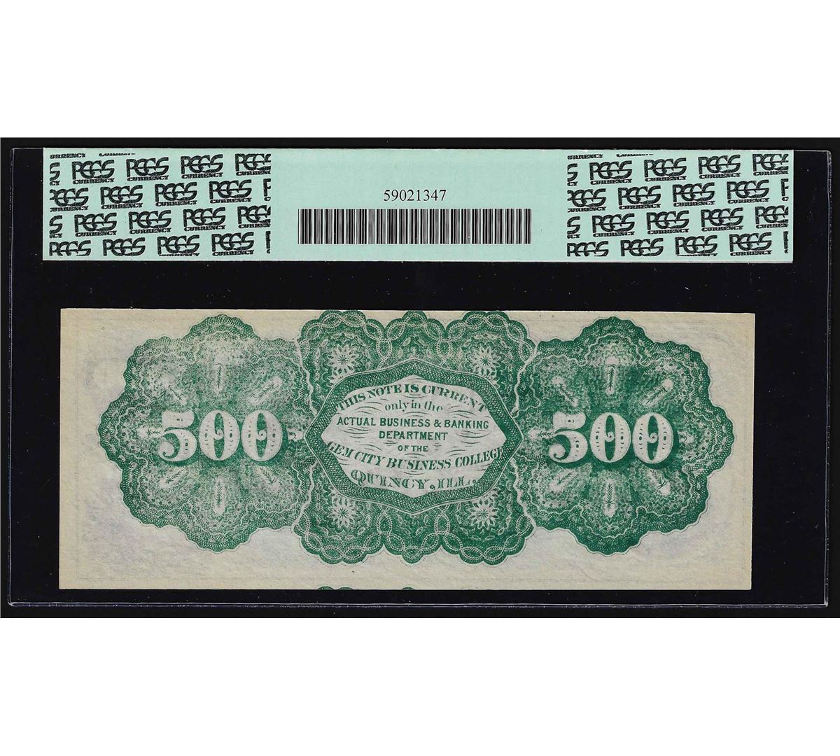 1800s $500 First National Bank of Gem City Business College Obsolete Note PCGS 5