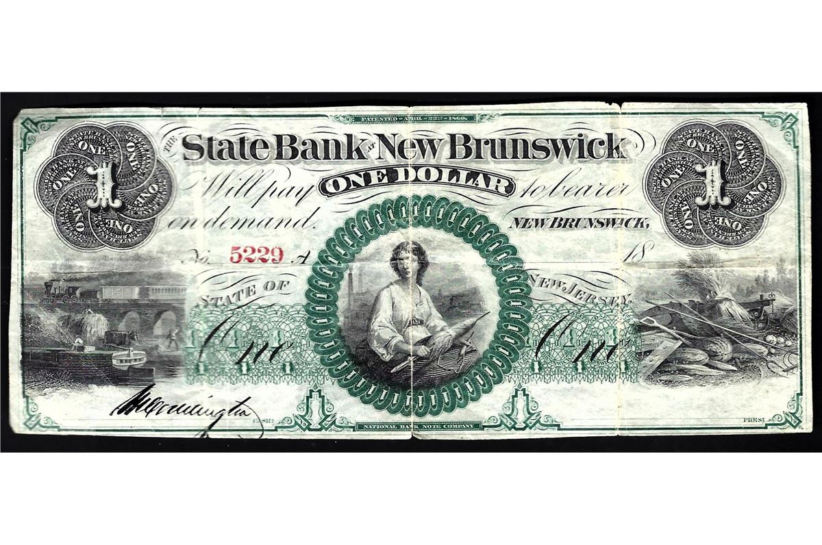One 1800s The State Bank of New Brunswick Obsolete Bank Note.