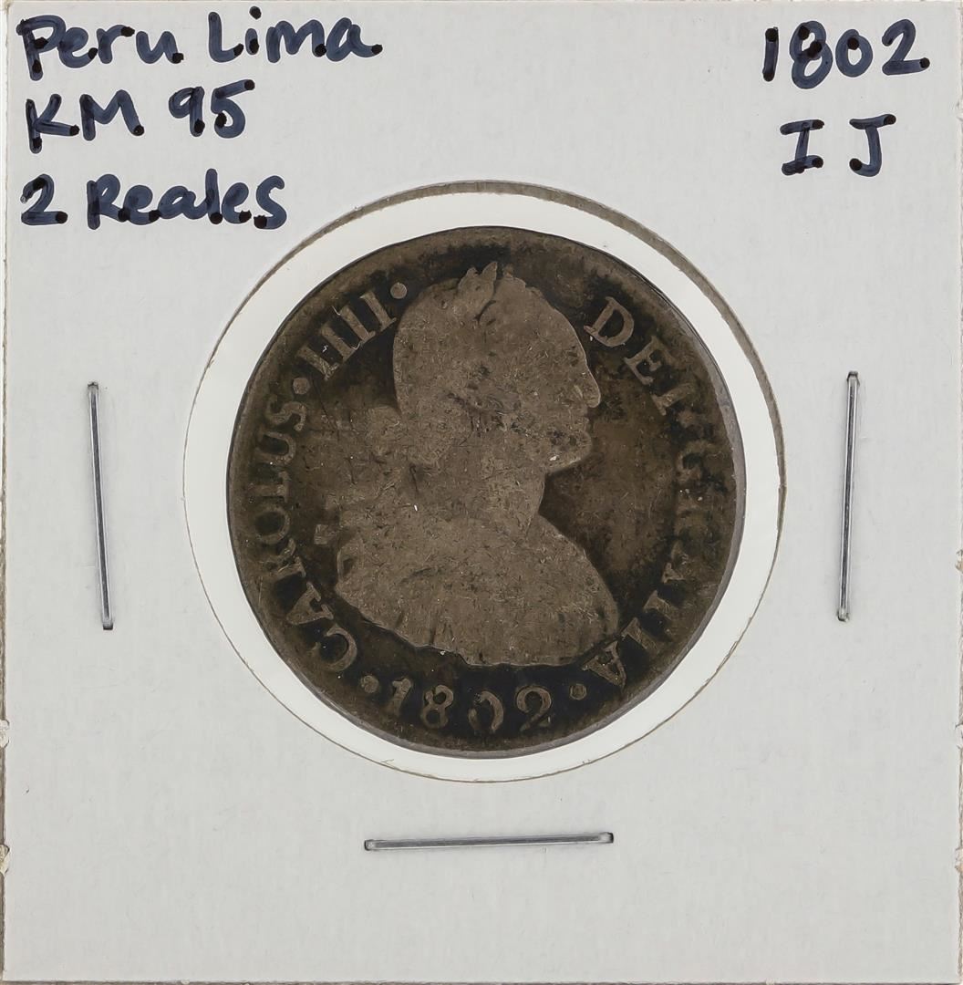 One 1802 IJ Peru Lima 2 Reales KM95 Silver Coin.
