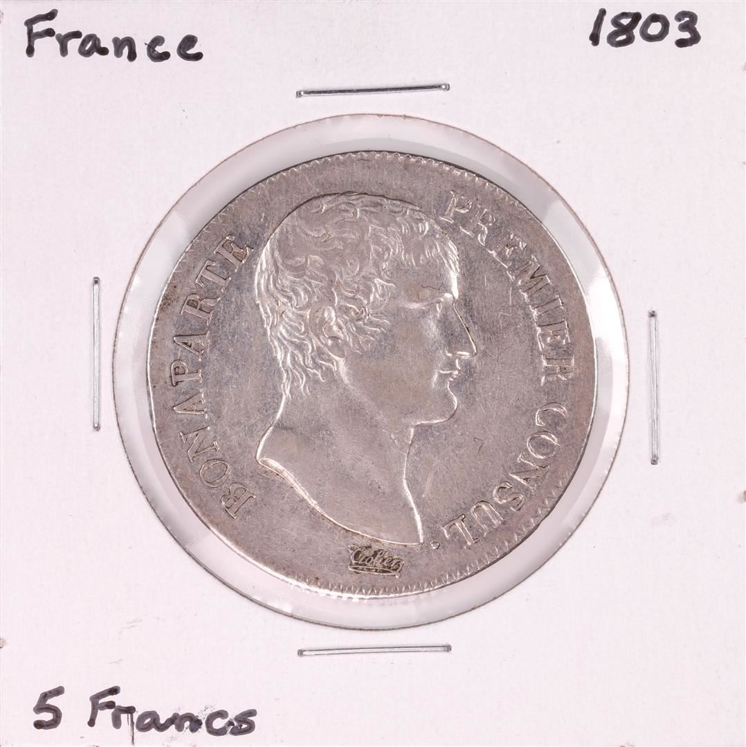 One 1803 France 5 Francs Silver Coin.