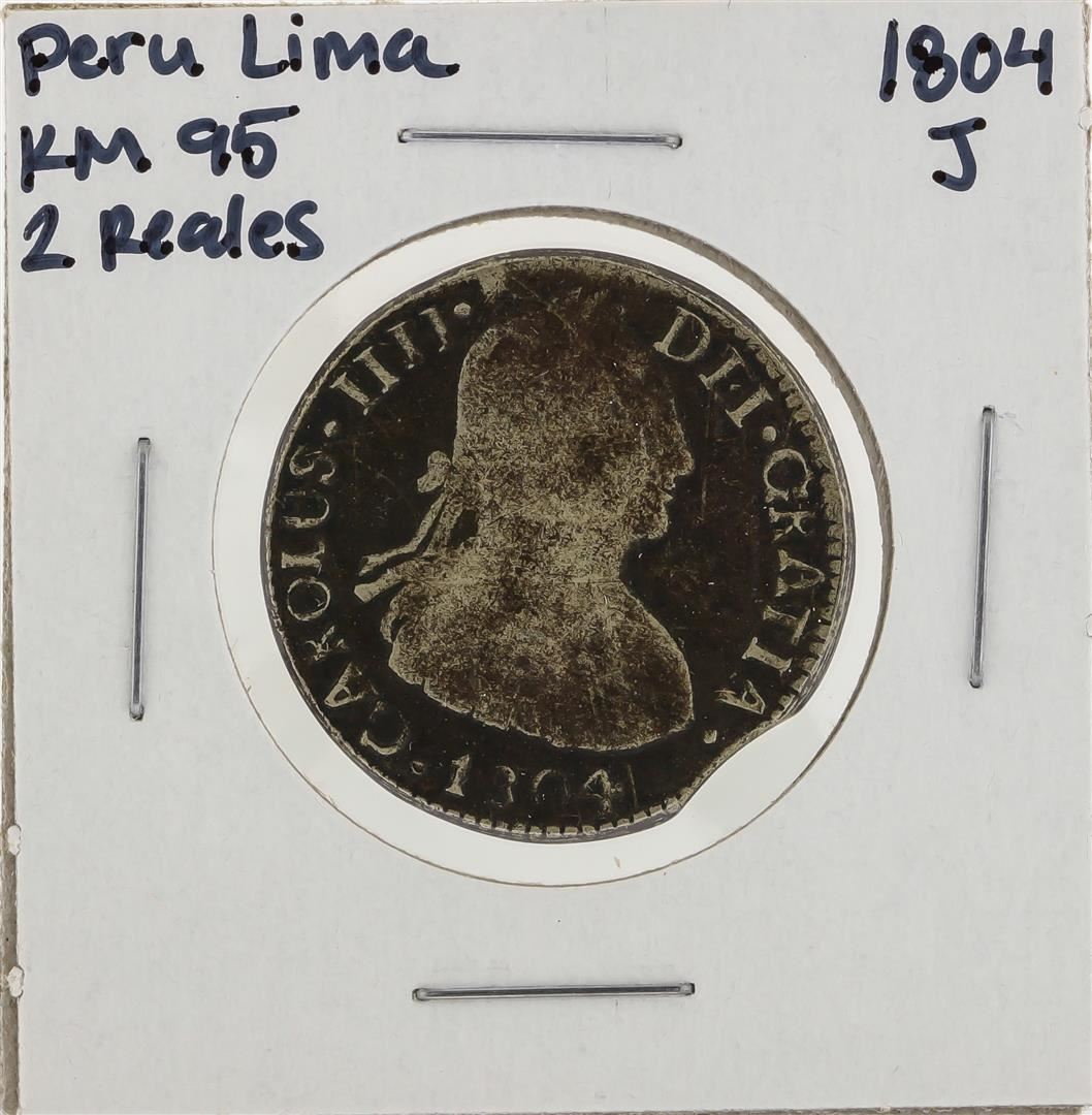 One 1804 J Peru Lima 2 Reales KM95 Silver Coin.